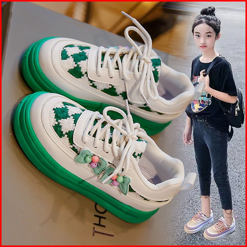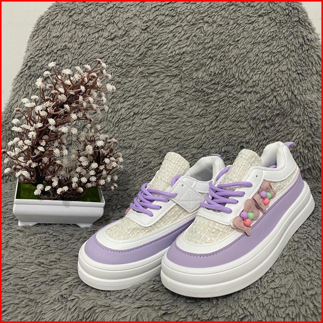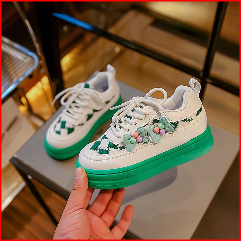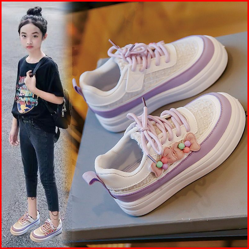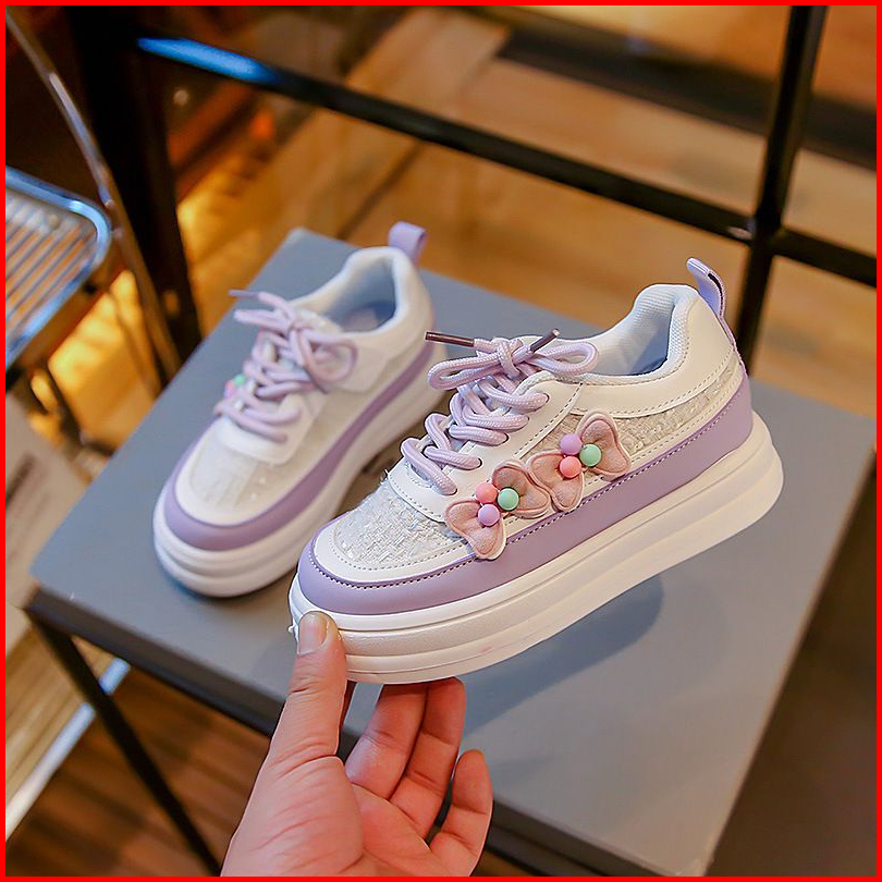 Sepatu Sneaker Temali Bunga Fashion Anak Perempuan