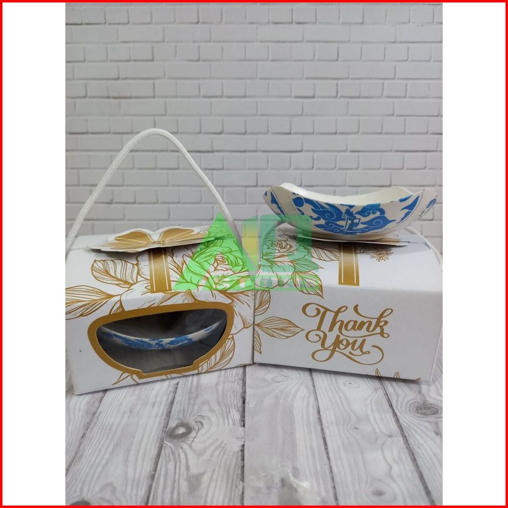 Isi 100pcs Souvenir Mangkok Kotak Lengkung Batik Biru Kemasan Box