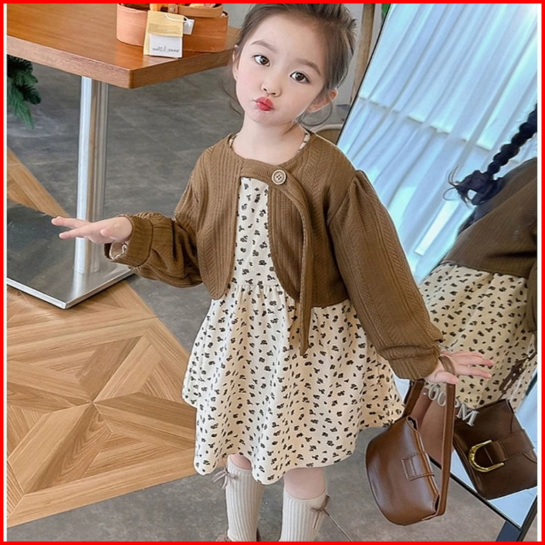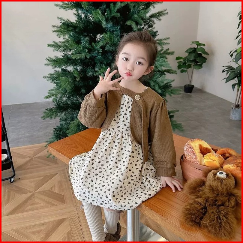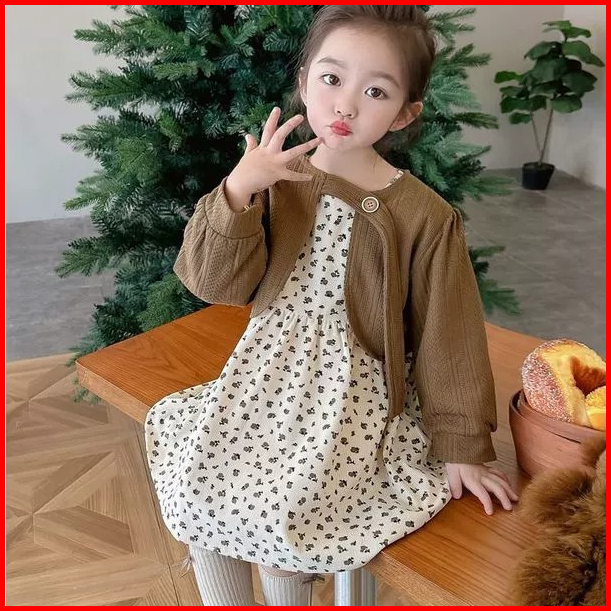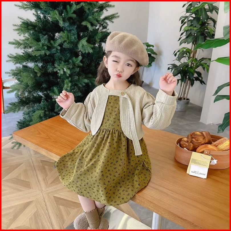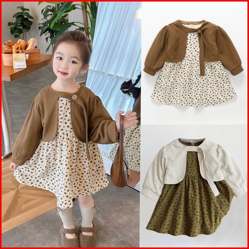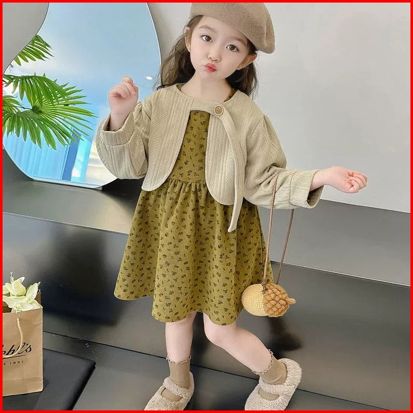 Joyfultots Set Gaun Anak Perempuan Gaun Putri Gaya Korea Gaun Bayi Set Gaun Anak Perempuan