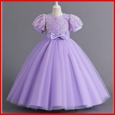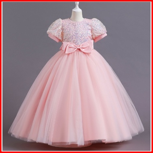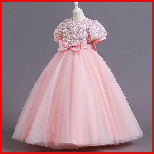 Dress Pesta M 105 Anak Perempuan Import Baju Pesta Anak Tutu Satin Gaun Bling Import High Quality Gaun Natal