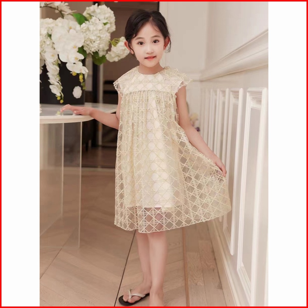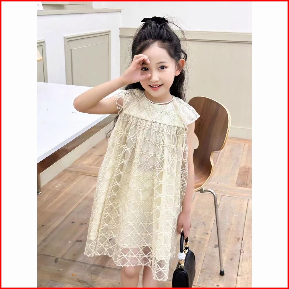Korean Style Dress Pricess Anak Perempuan Dress Lace Tanpan Lengan Dress Fashion Dress Pricess Mains Premium Import
