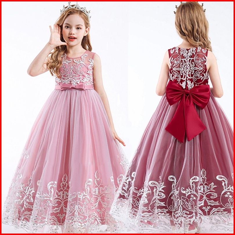 Anak Gadis Pernikahan Gaun Putri Bunga Elegan Gaun Panjang Pesta Malam Gaun Anak Untuk Gadis 3-14 Tahun