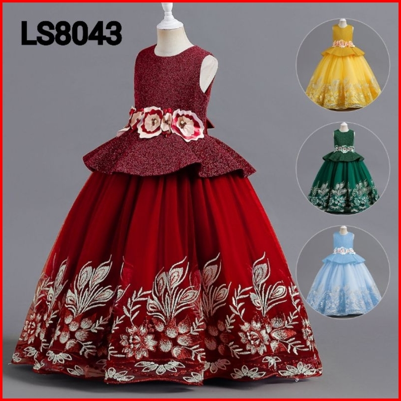 Kbda 25 Ls8043 Dress Princess Anak Motif Bunga