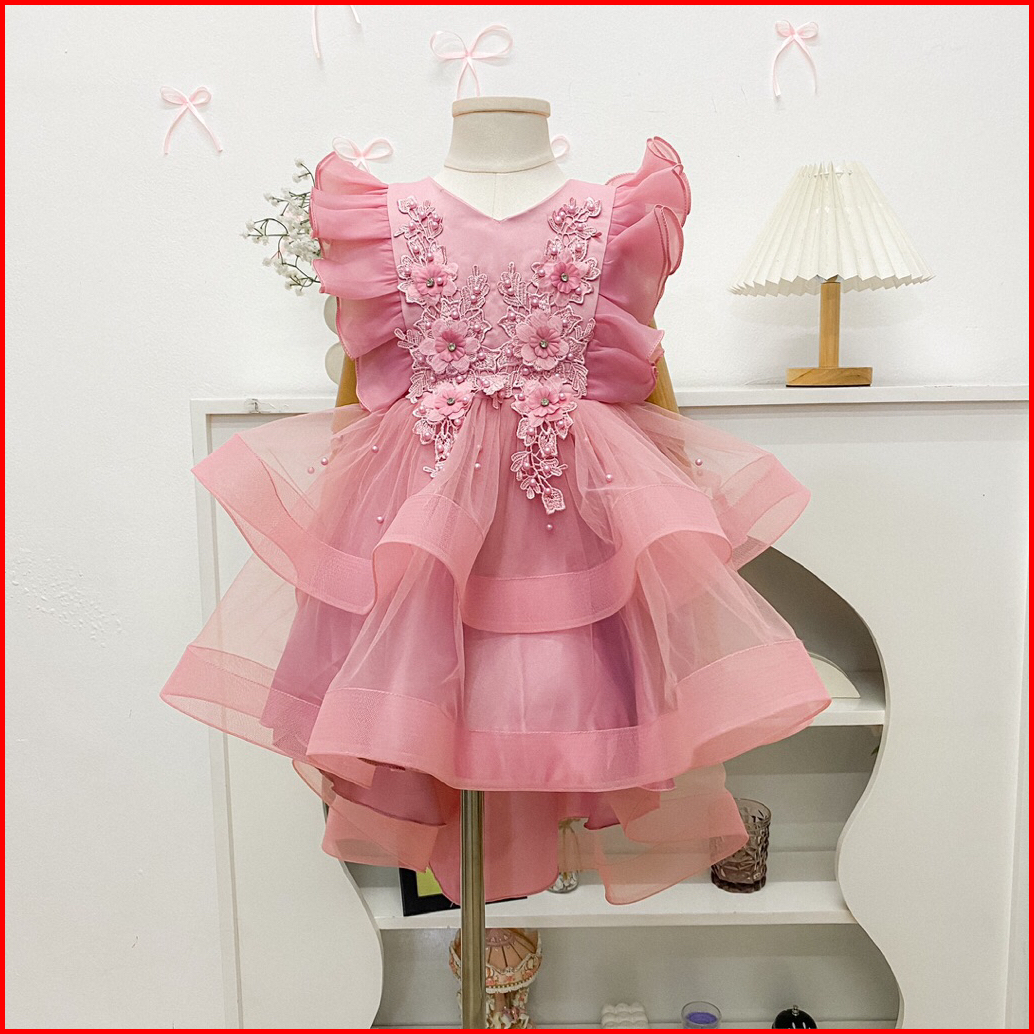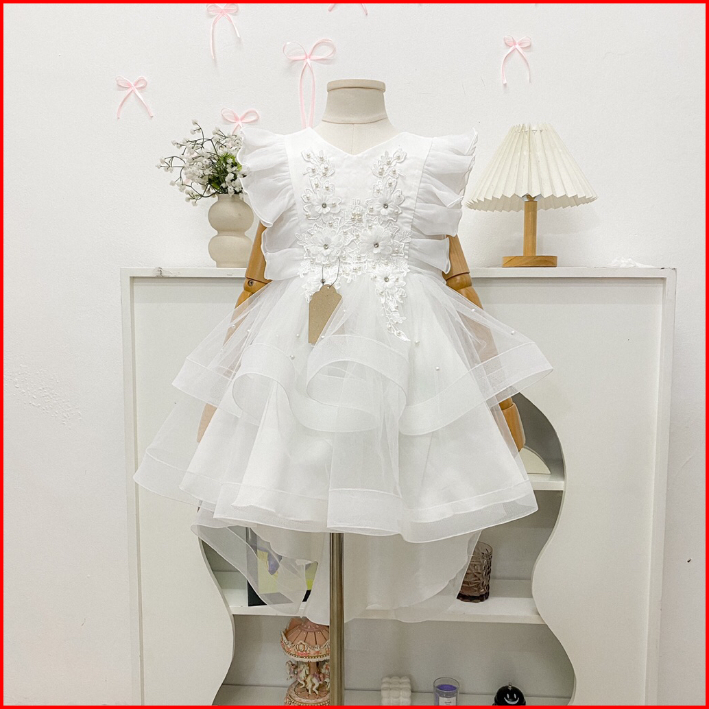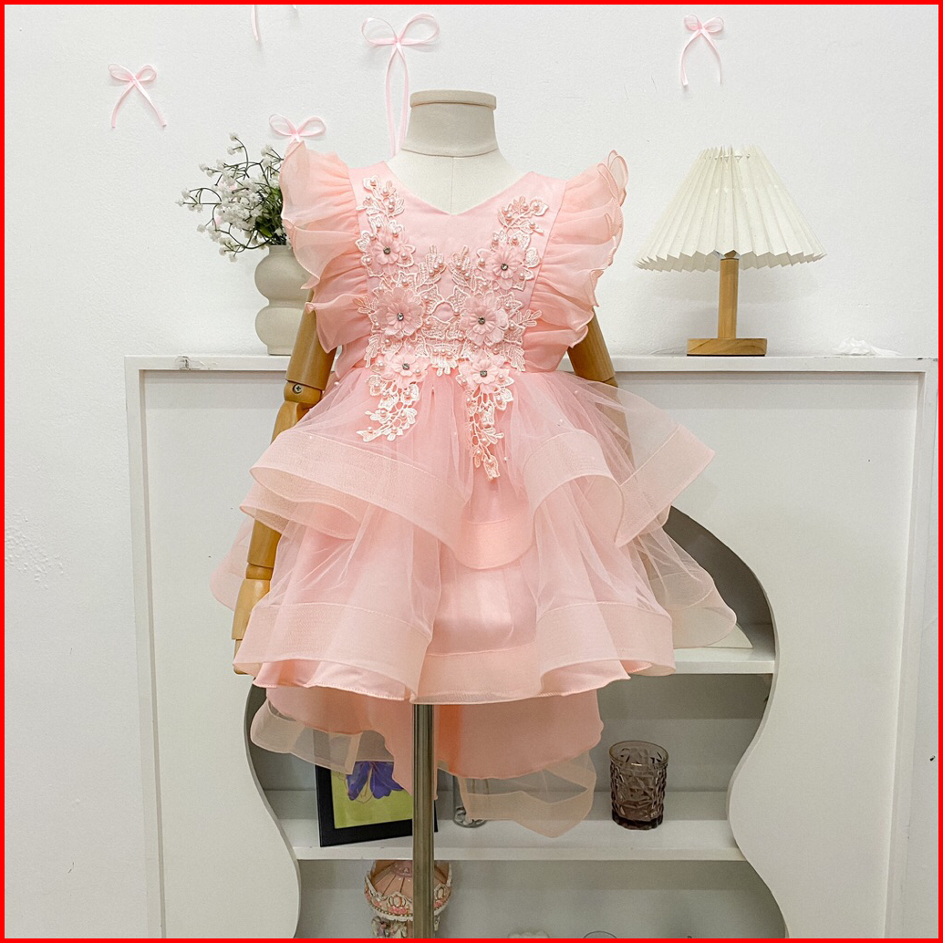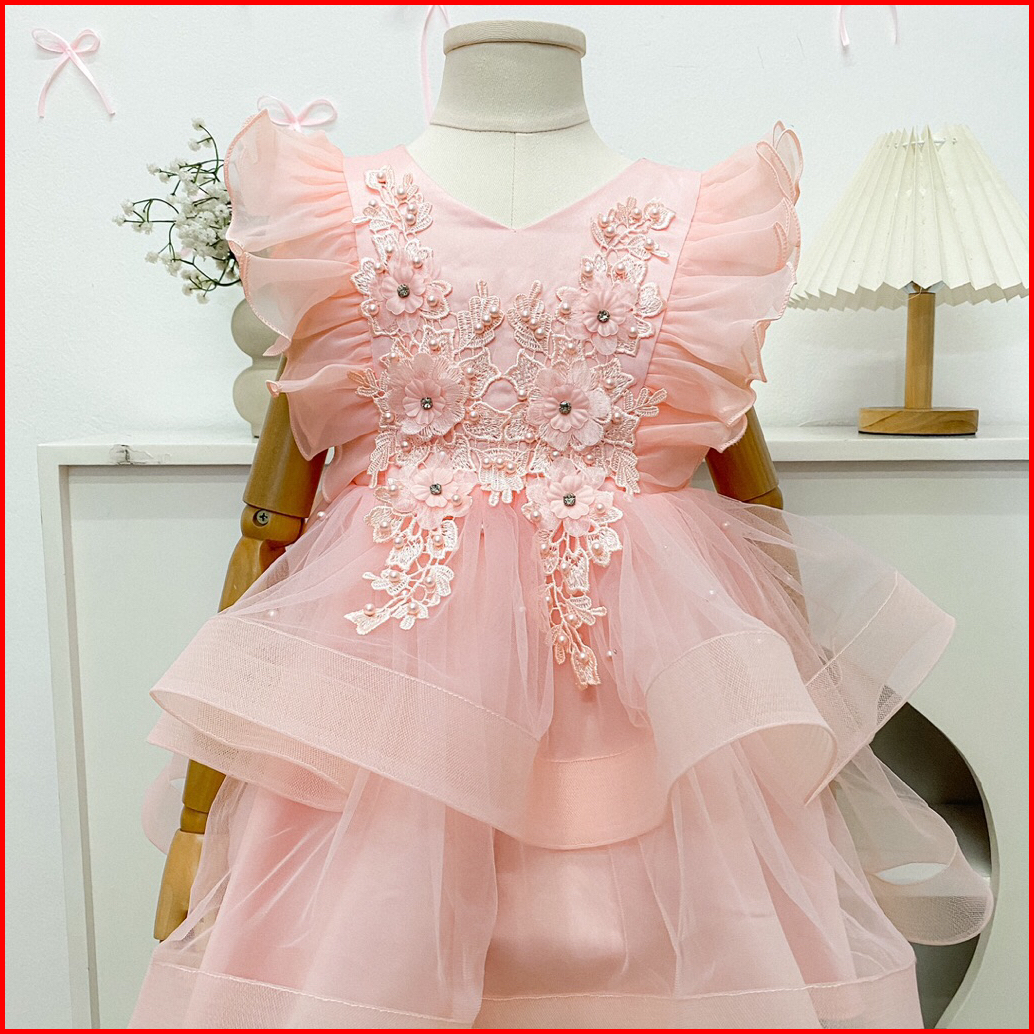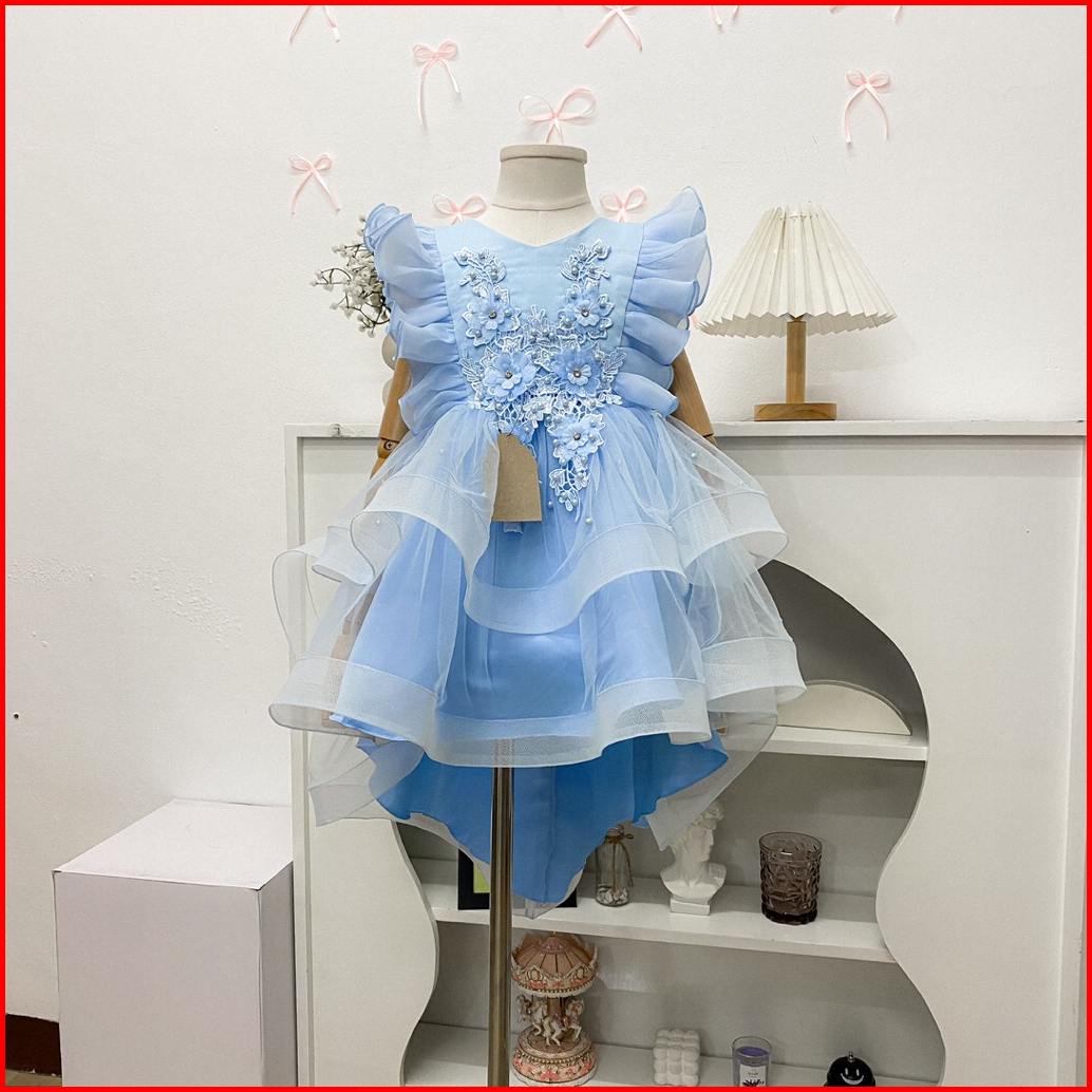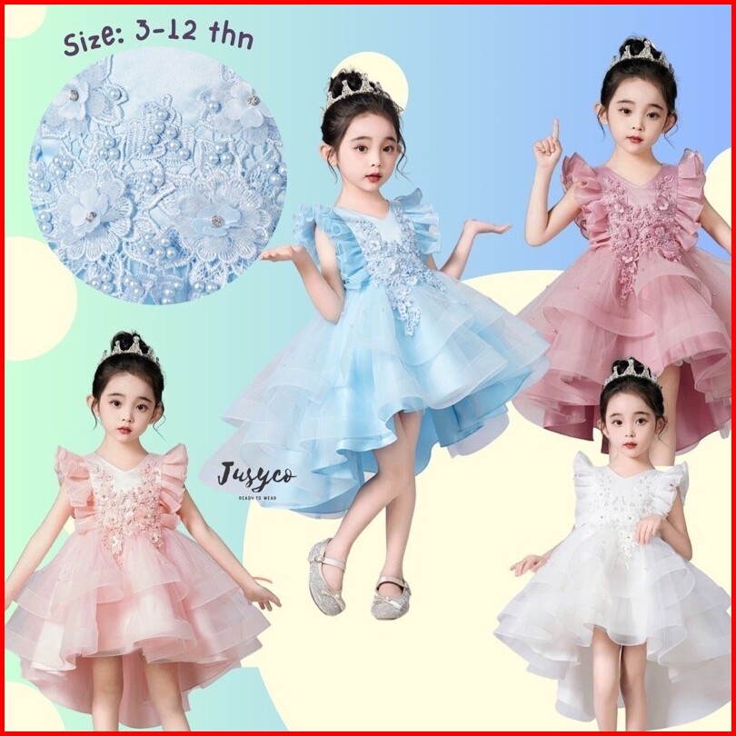 Venice Embroidery Layered Kids Party Dress Gown Asymetric Anak Perempuan