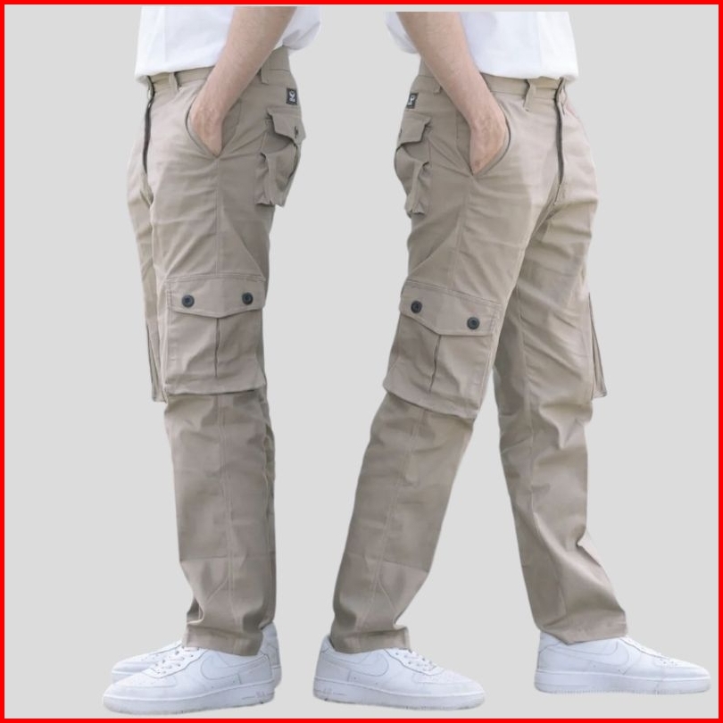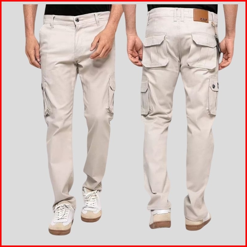 Celana Cargo Panjang Pria Premium Warna Hitam Cream Abu Mocca Army Size 28-38