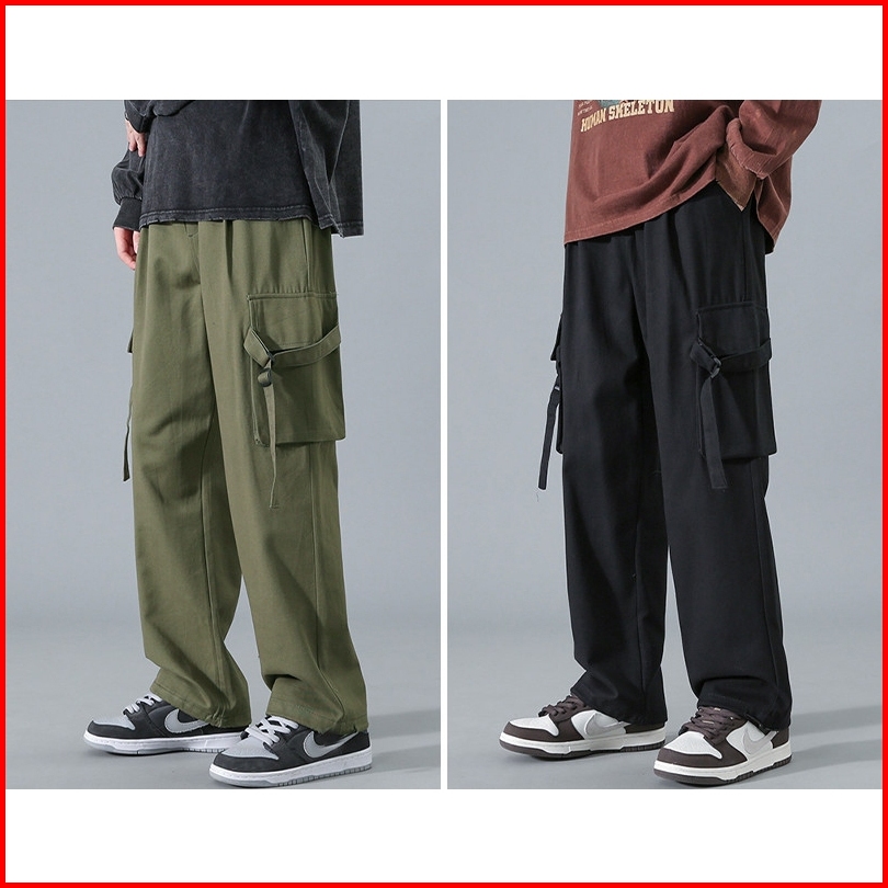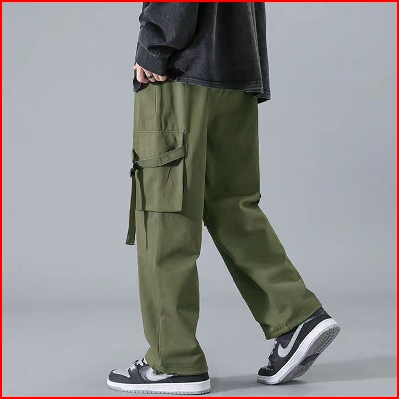 Celana Kargo Pria Hitam Baggy Pants Panjang Cowok Dewasa Celana Cargo Casual Korean Style