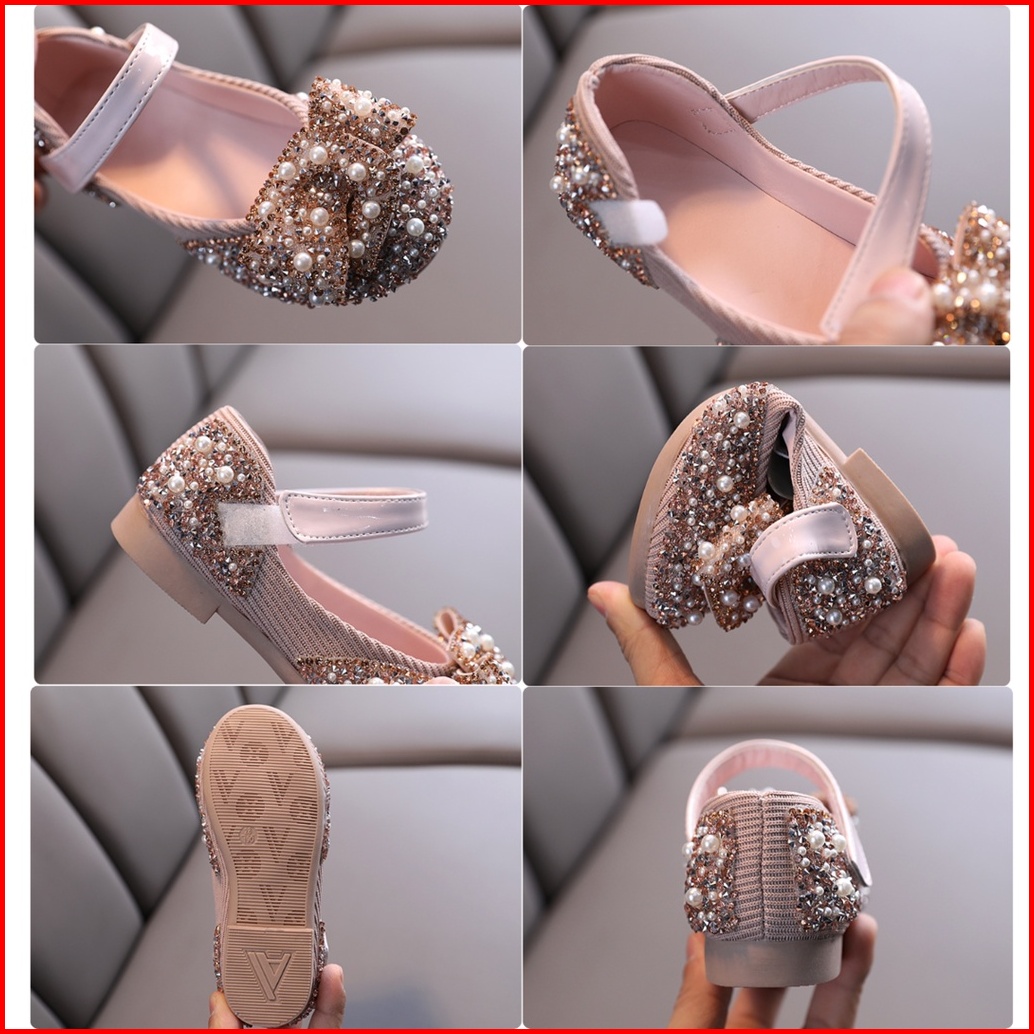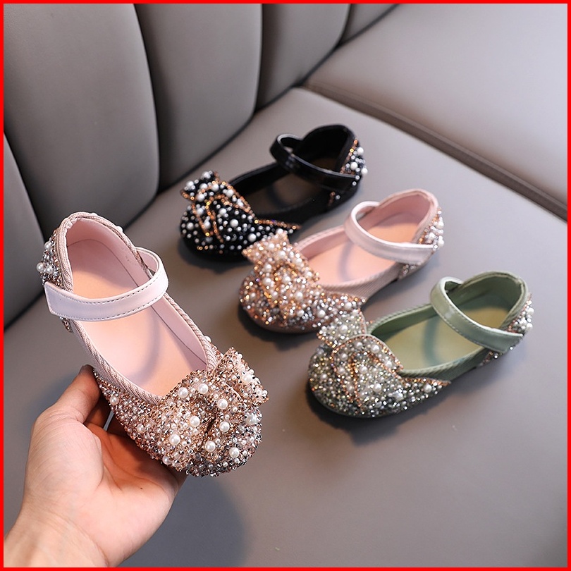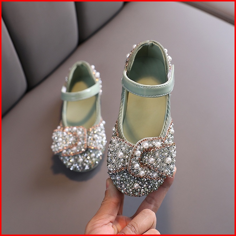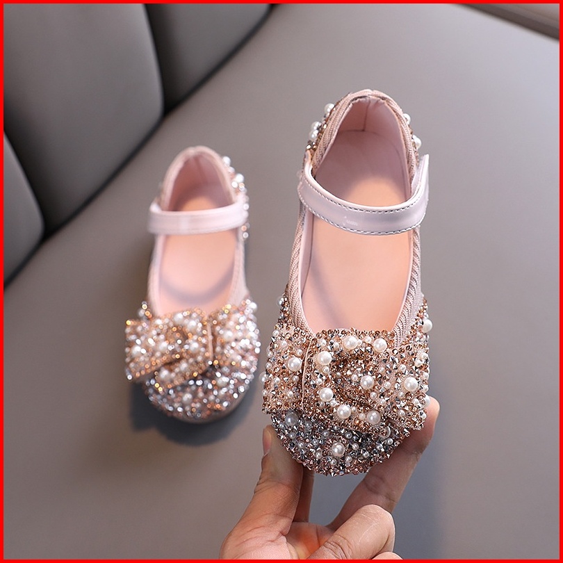 Sepatu Pesta Flat Anak Perempuan Size 21-36 Import Korea Princess Mutiara Blink Terbaru 1 2 Tahun - Tanggung