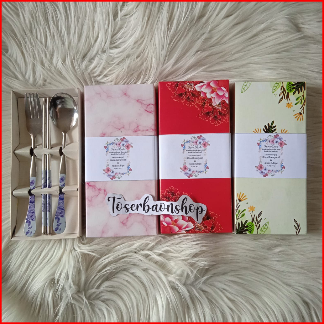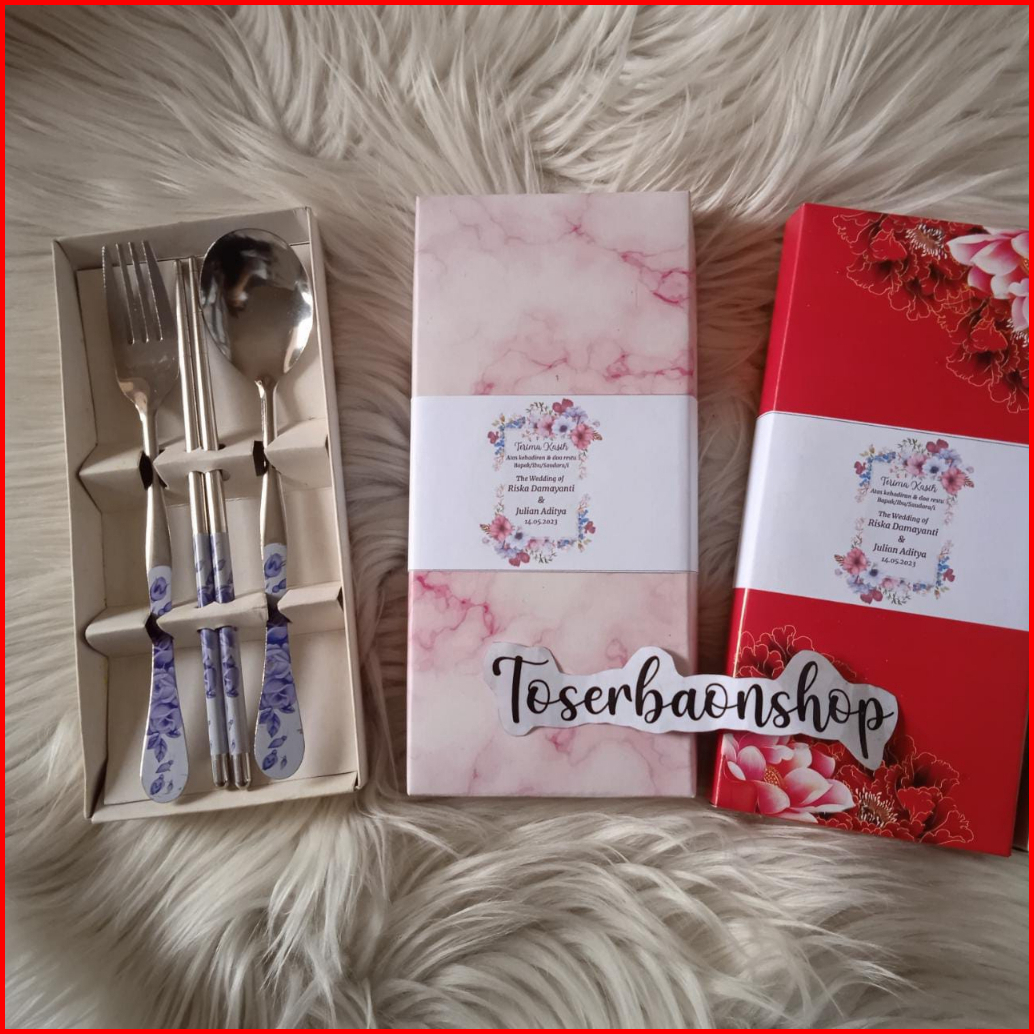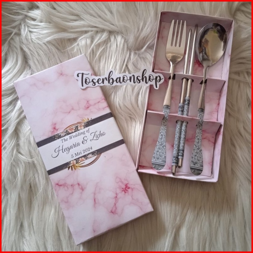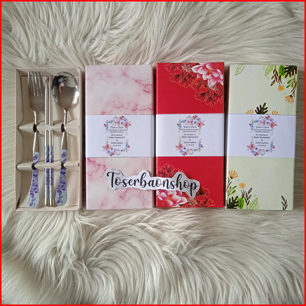 50 Set Souvenir Sendok Garpu Sumpit Gagang Motif Bunga Sakura Sovenir Pernikahan