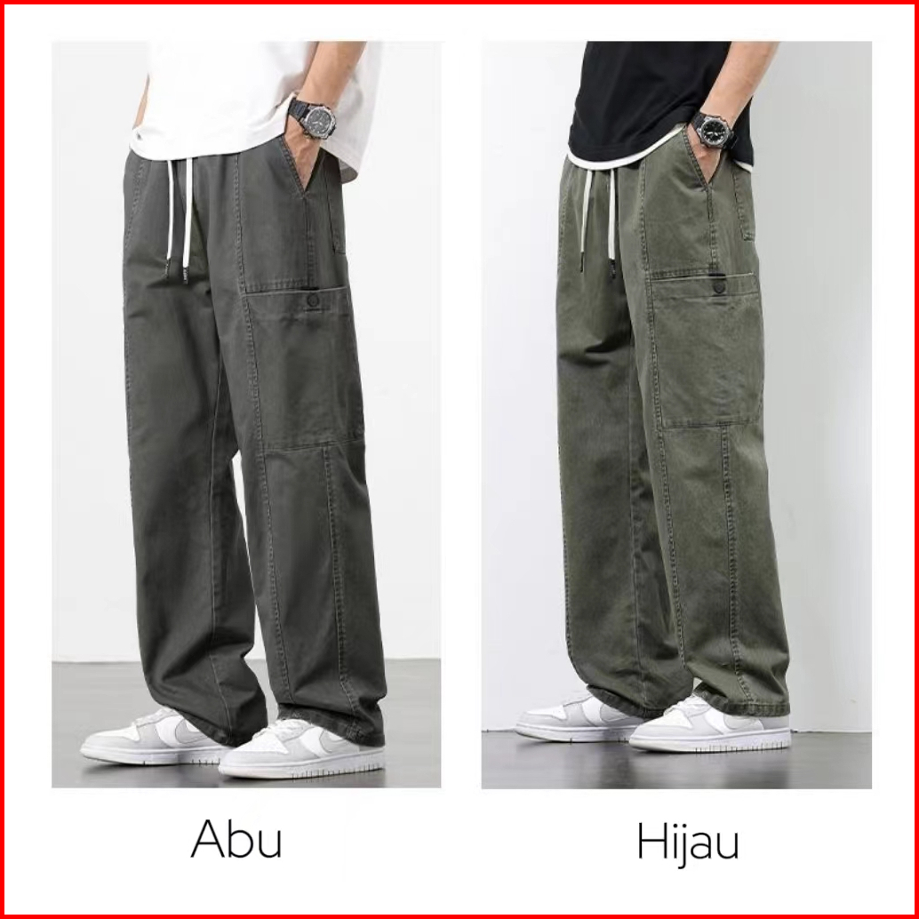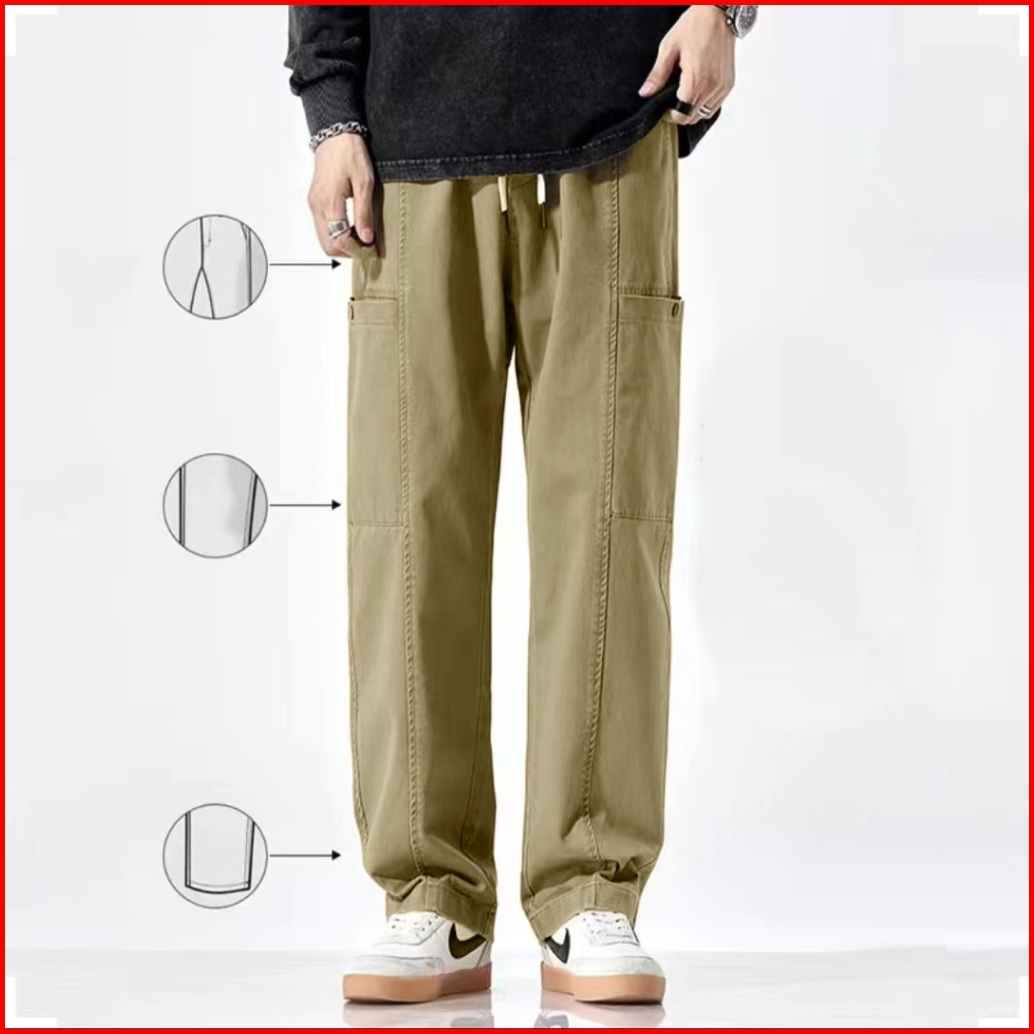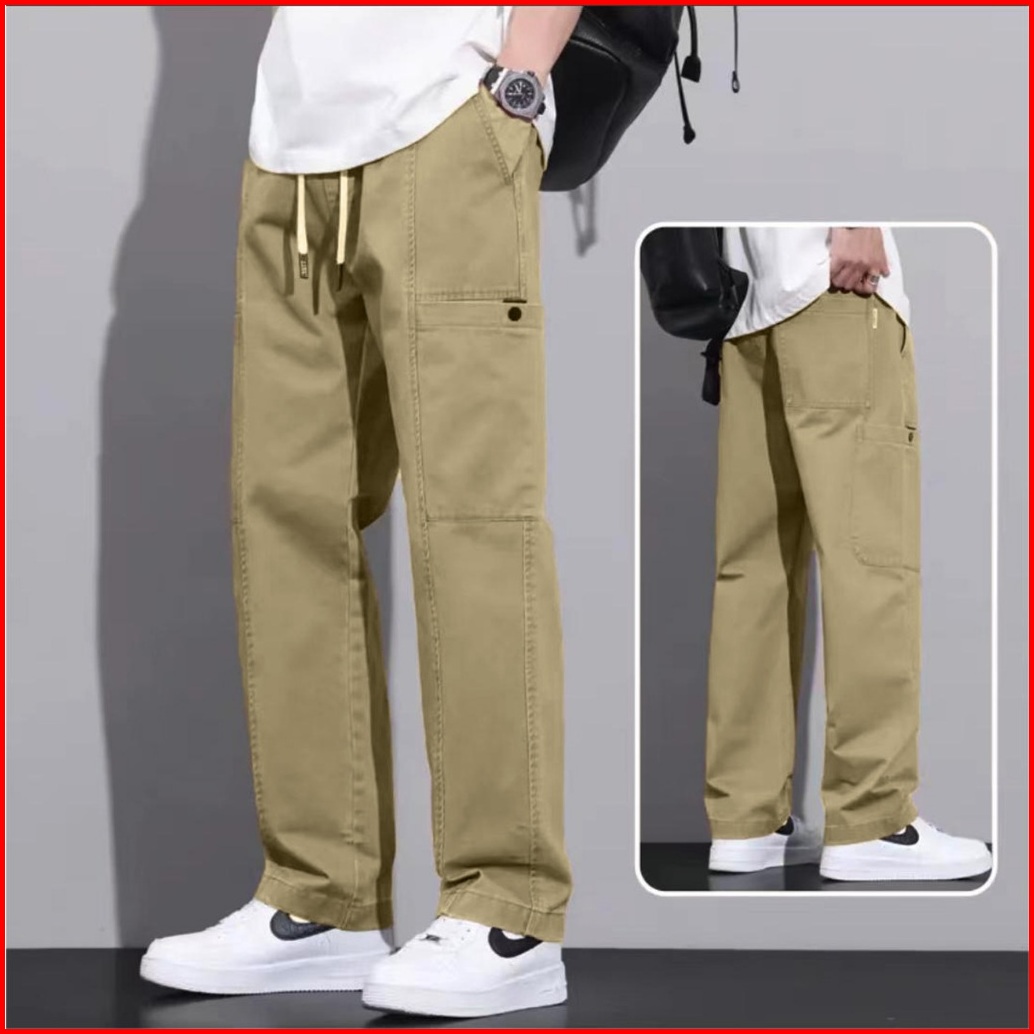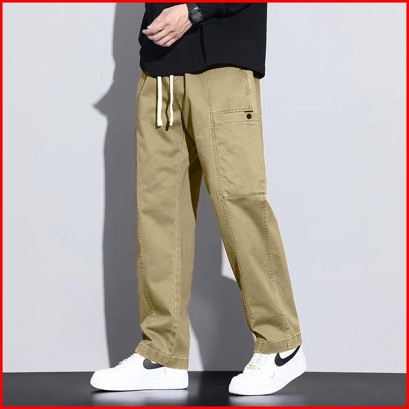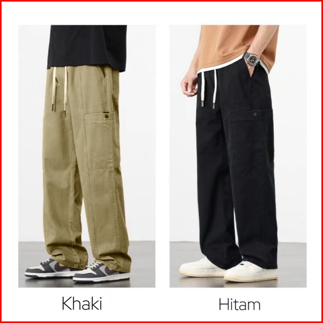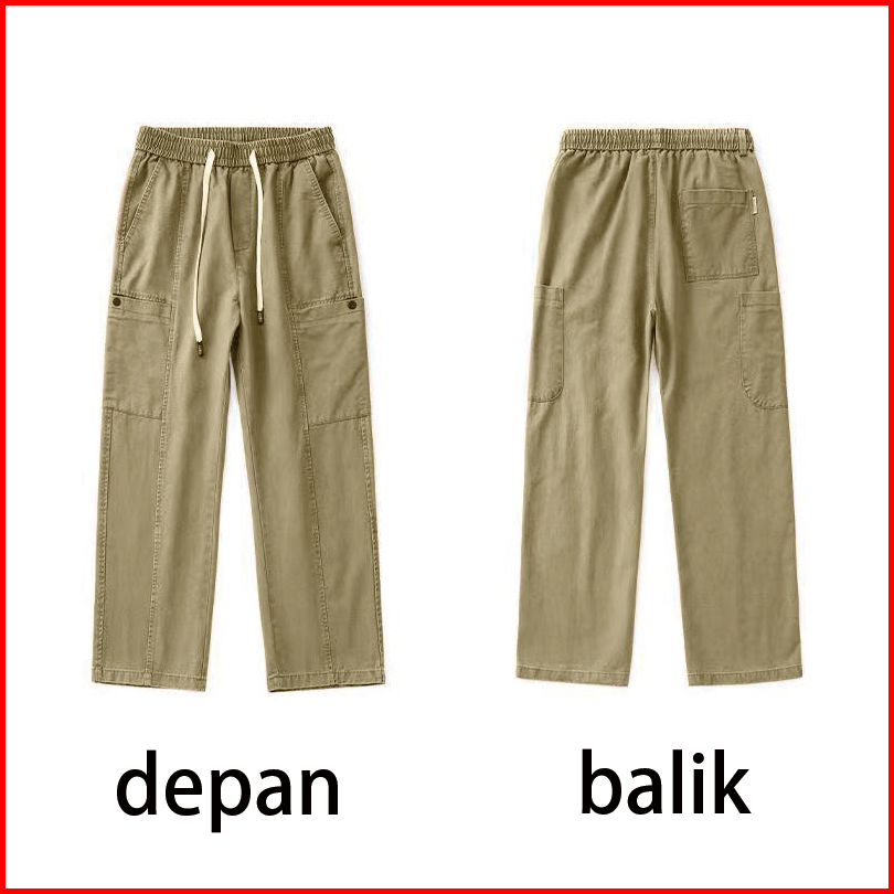 Celana Cargo Pria Panjang Baggy Celana Chinos Casual Cowok Straight Pinggang Karet Kargo Pants Korean Style