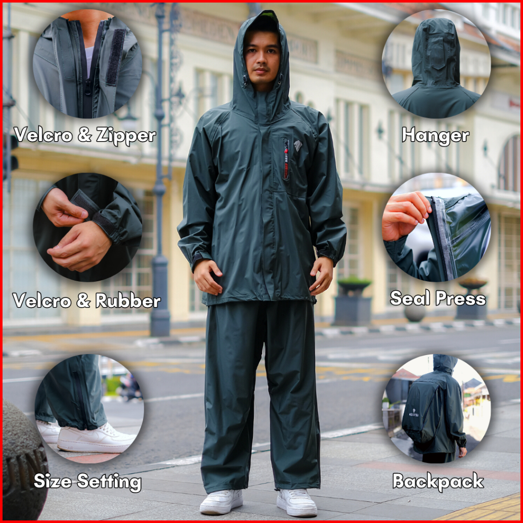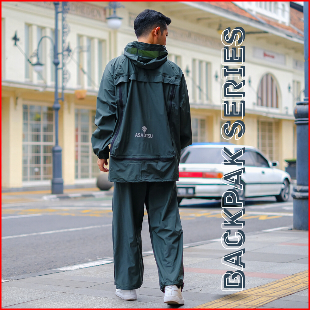 Asadtsu Hijau Army Jas Hujan Ransel Backpack Besar Setelan Dewasa Pria Wanita