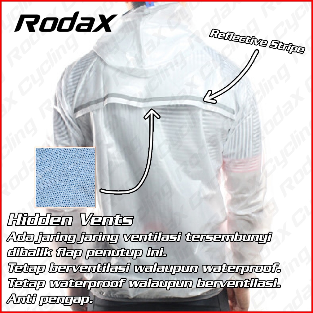 Rodax Raincoat - Tech White Original - Jas Hujan Sepeda Sporty Anti Air Dan Tetap Berventilasi A Mantel Hujan Jaket Huja