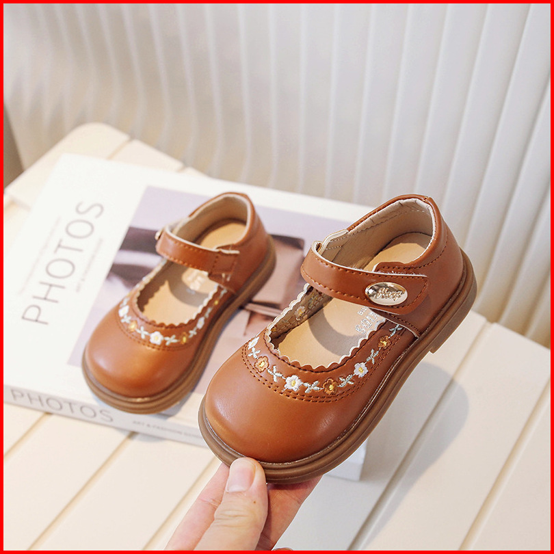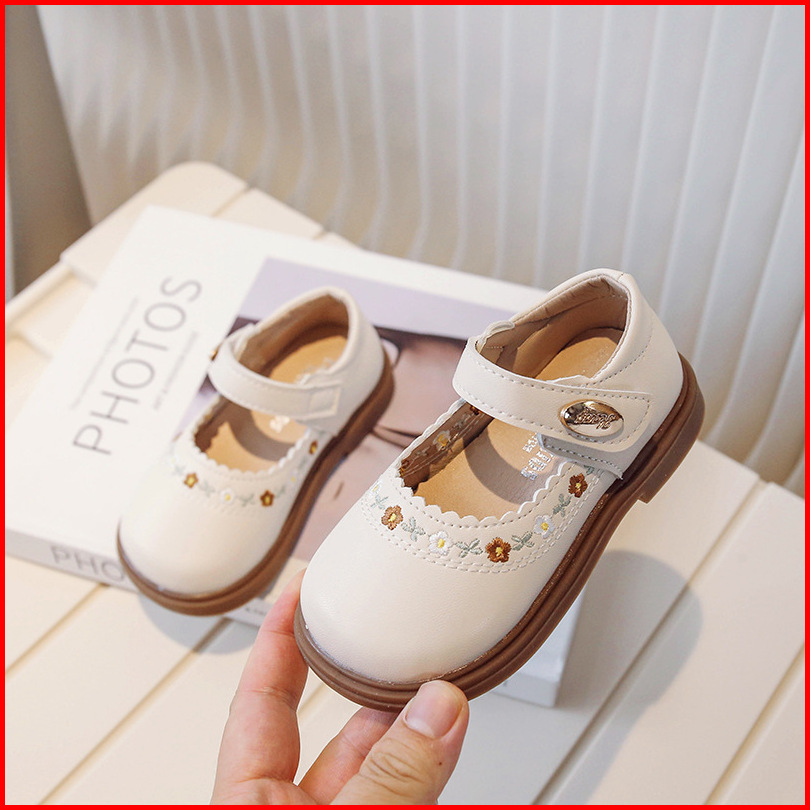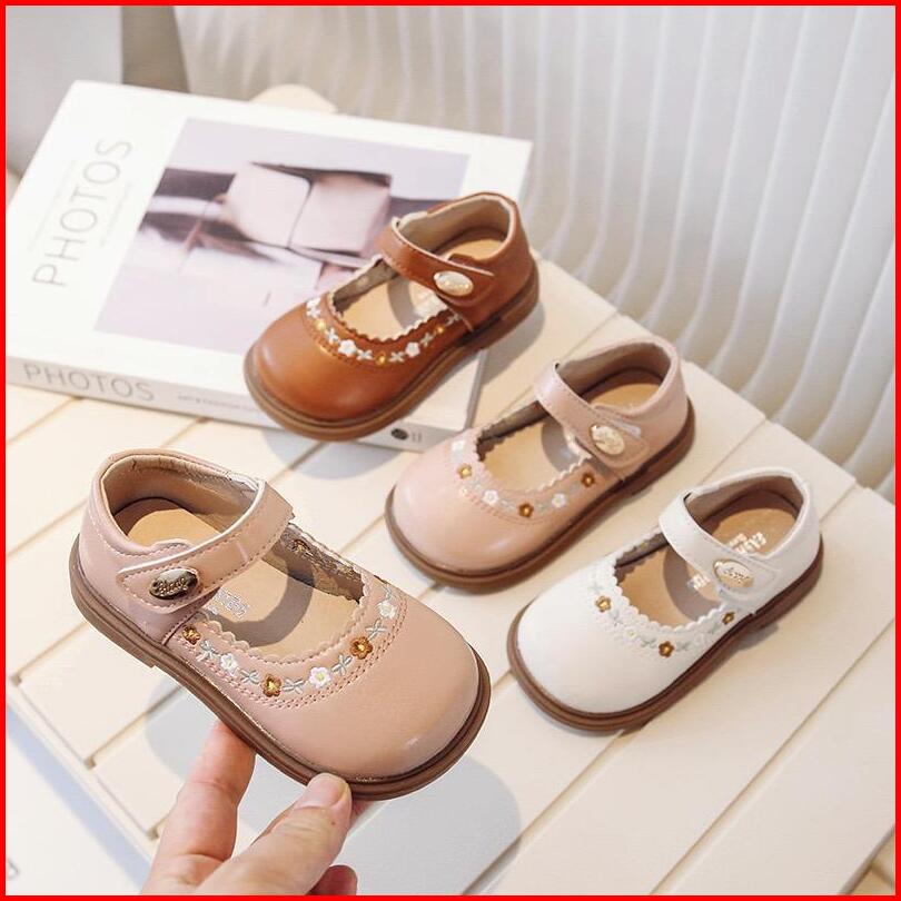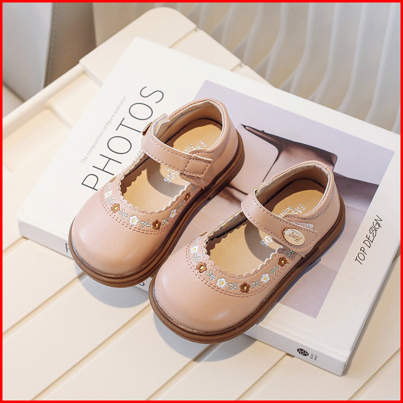 Sepatu Anak Kulit Sol Lembut Sepatu Anak Bordir Bunga Spg11 Lyme