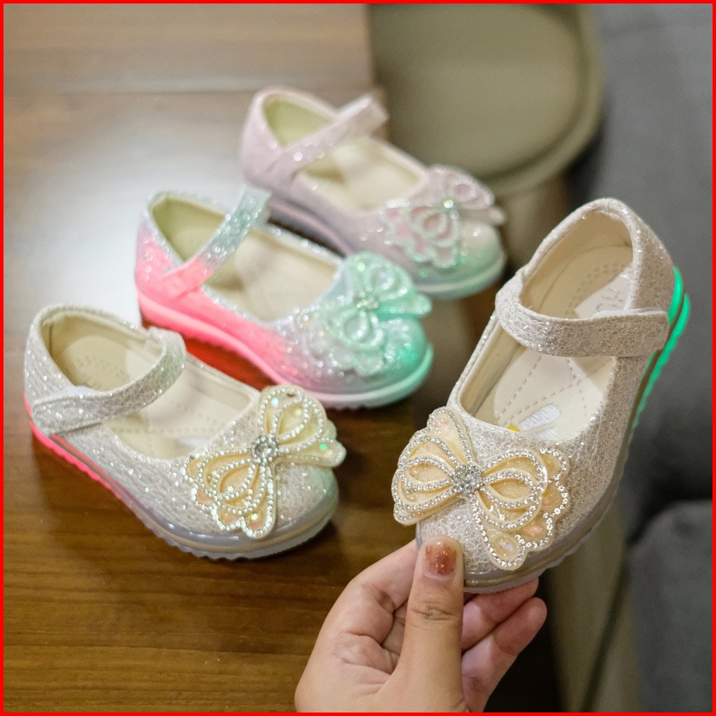 Minipetite Shbc82 Sepatu Pesta Led Anak Perempuan Sepatu Flat Lampu Anak Cewek Size 21-36