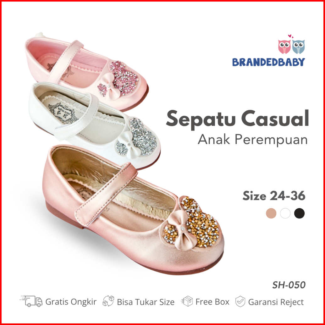 Brandedbaby 26-38 Sepatu Anak Perempuan Flat Glitter Pink Putih