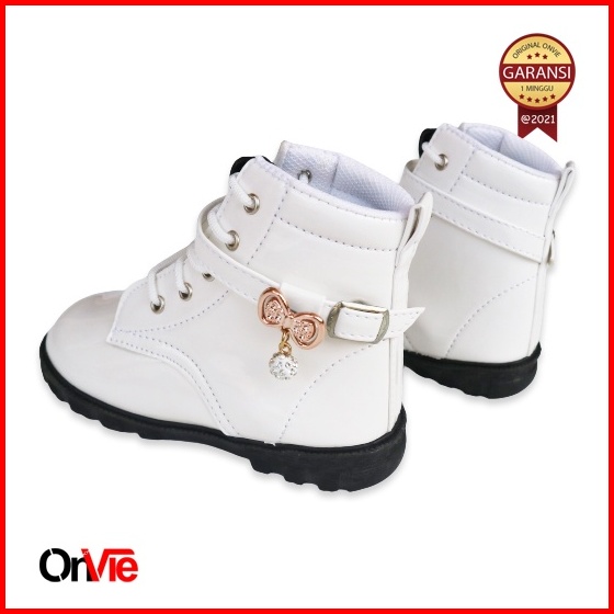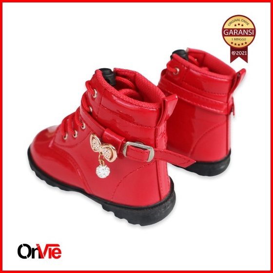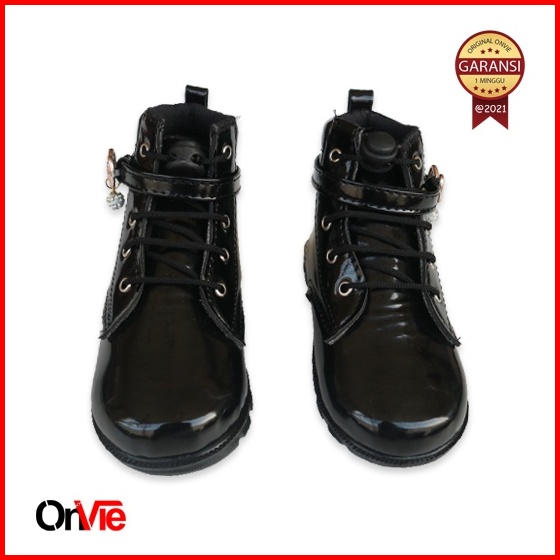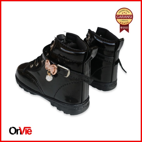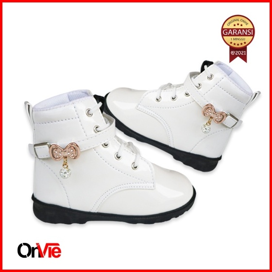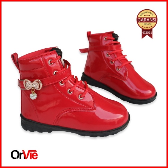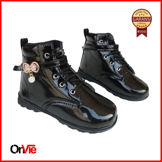 Sepatu Boots Anak Perempuan Glossy Motif Pita Mutiara Sepatu Pesta Formal 22-35 Onvie