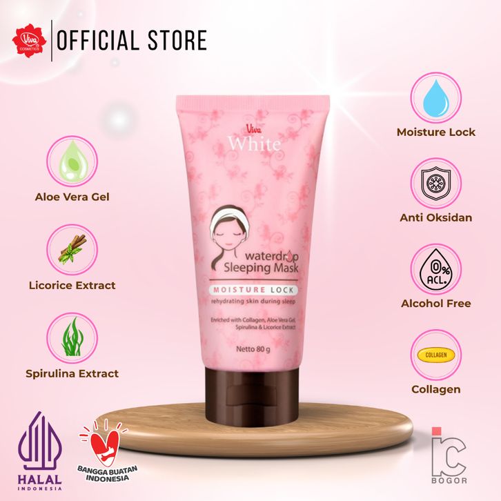 Viva White Waterdrop Sleeping Mask 80gr – Masker Malam Mencerahkan, Melembapkan & Anti Aging