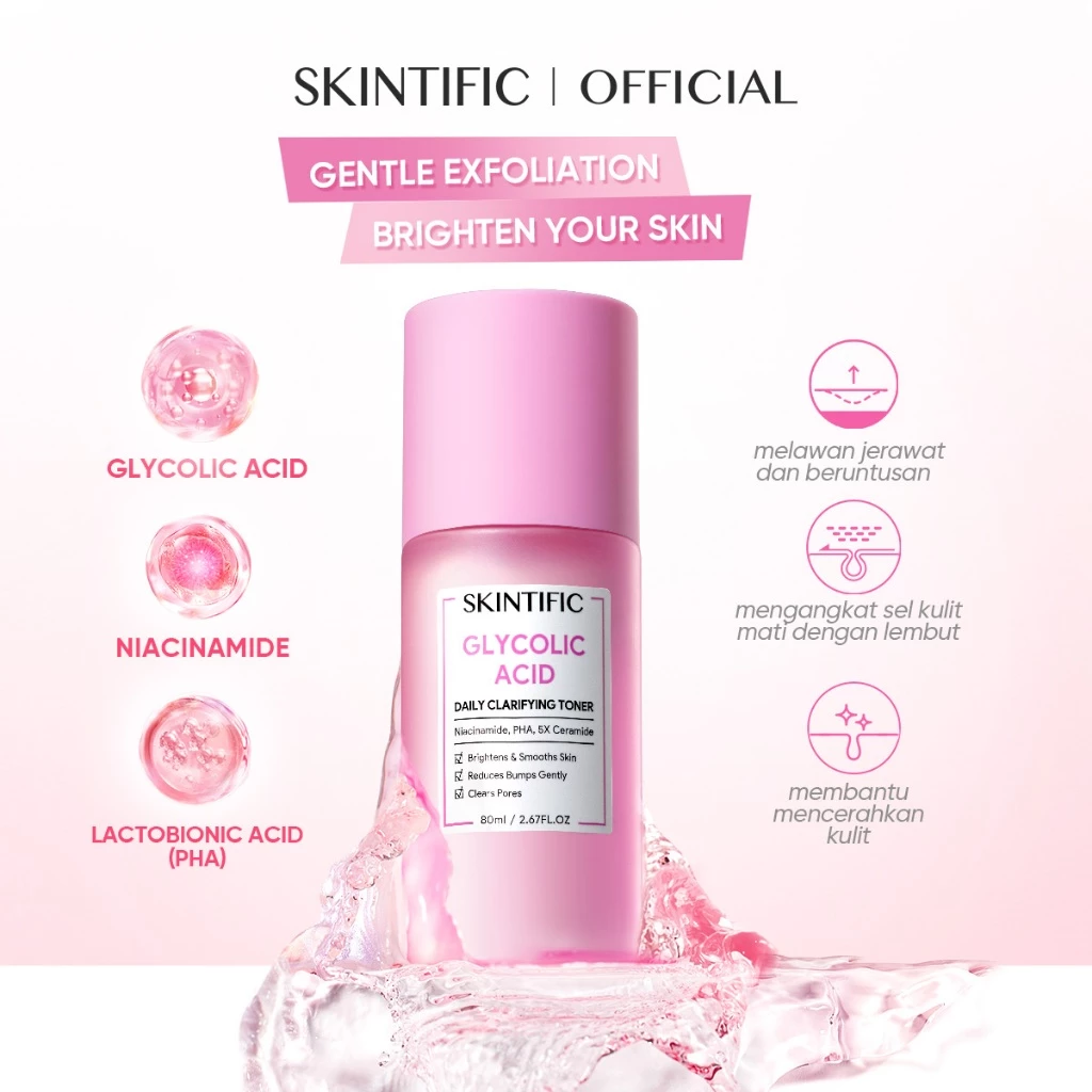 SKINTIFIC - Glycolic Acid Exfoliating Brightening Daily Clarifying Toner 80ml | Toner Eksfoliasi Wajah