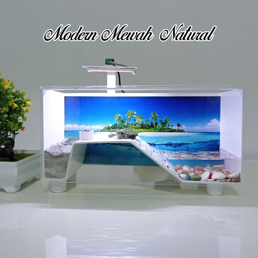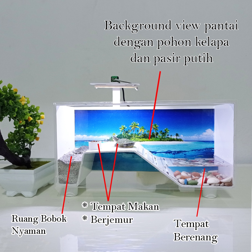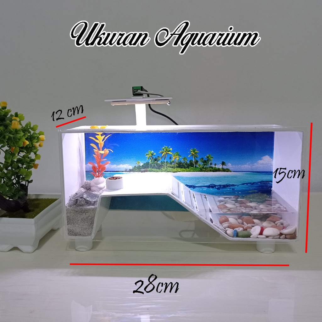 Aquarium kura kura/aquarium kurakura brazil/akuarium kura kura kecil lengkap dengan lampu LED dan hiasan-AKKB