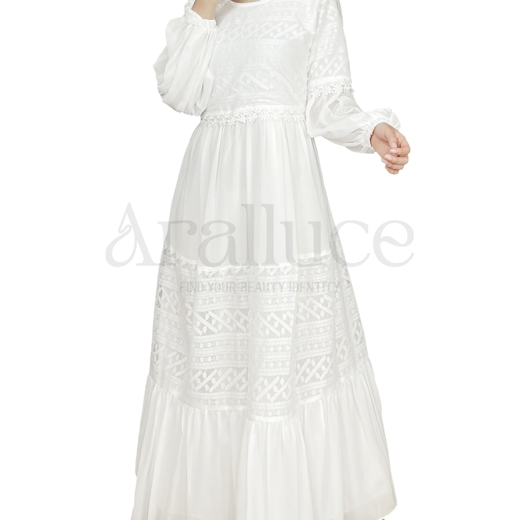 Baju Dress Gamis Putih Wanita Muslim By ARRALUCE Kekinian Terbaru ARL 048 / Gamis Brukat Brokat Burkat Borkat Kondangan