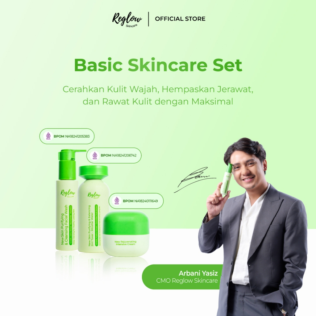 [Mall] reglow perfect glowing and whitening Reglow Basic Skincare Set Facial Wash, Toner dan cream