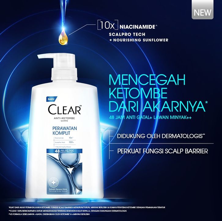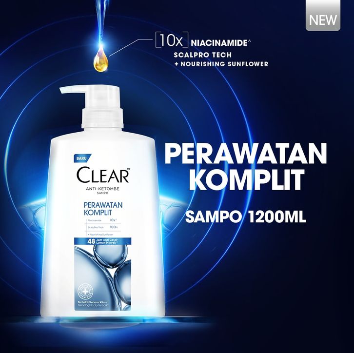 CLEAR Shampoo Anti Ketombe Perawatan Komplit, 48 Jam Melindungi dari Gatal dan Lawan Minyak dengan 10x Super Vitamin