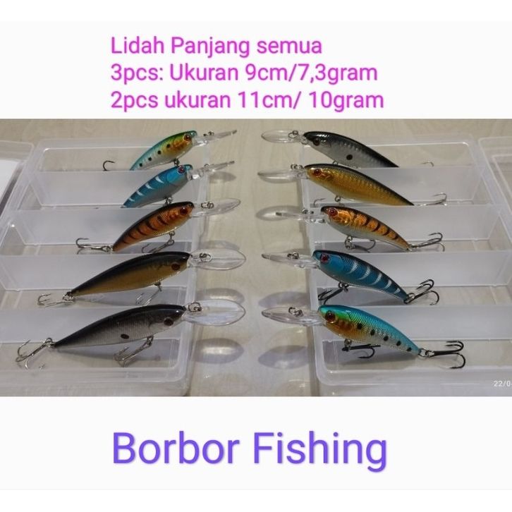 Umpan Paket Minnow Murah 5pcs+box - 13 cm / 11 9ram Minnow Umpan Hampala, Barakuda, Tuna dll