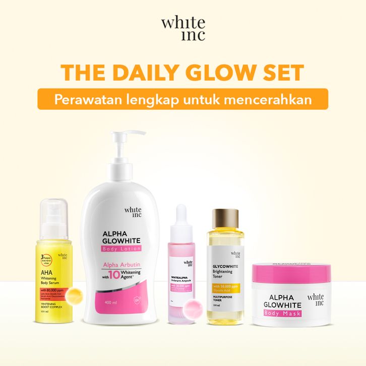 SPECIAL BUNDLING WHITE INC 4pcs paket Alpha Glowhite Body Lotion + AHA Body Serum + Alpha Glowhite Body Mask + Underarm