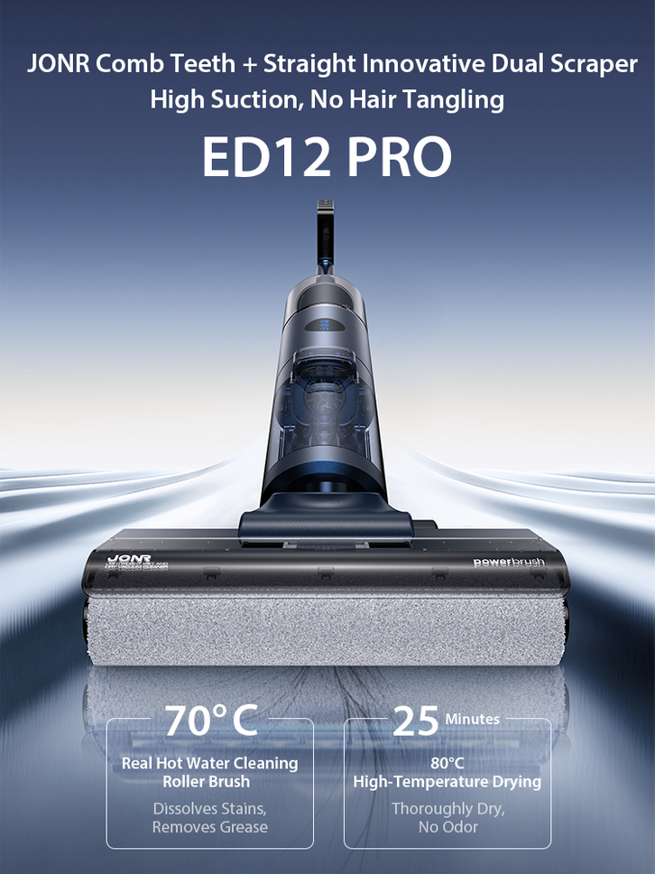 JONR ED12 Pro Wet & Dry Vacuum Cordless | Edge Cleaning | Self Cleaning | 99.9% Strerilization |Hot Water & Hot Air Dryi