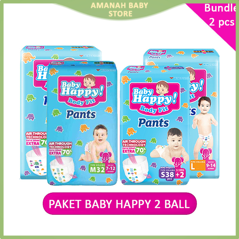 BUNDLING 2 BALL BABY HAPPY BODY FIT PANTS DIAPERS POPOK CELANA ALL VARIAN
