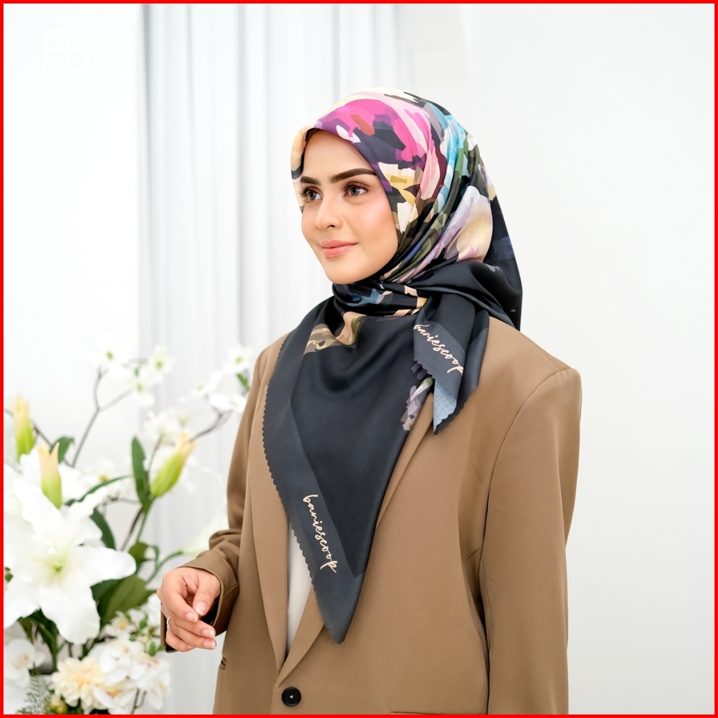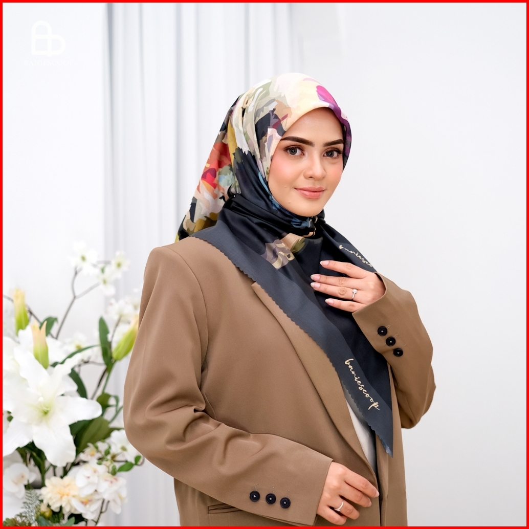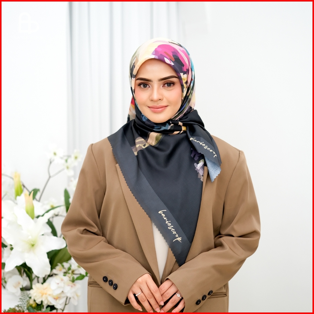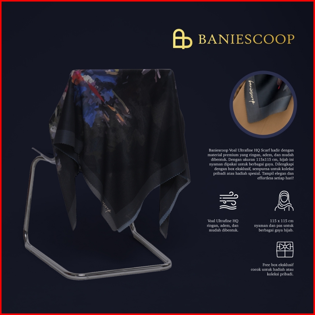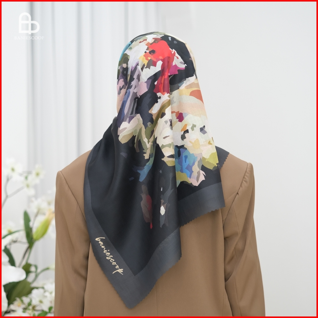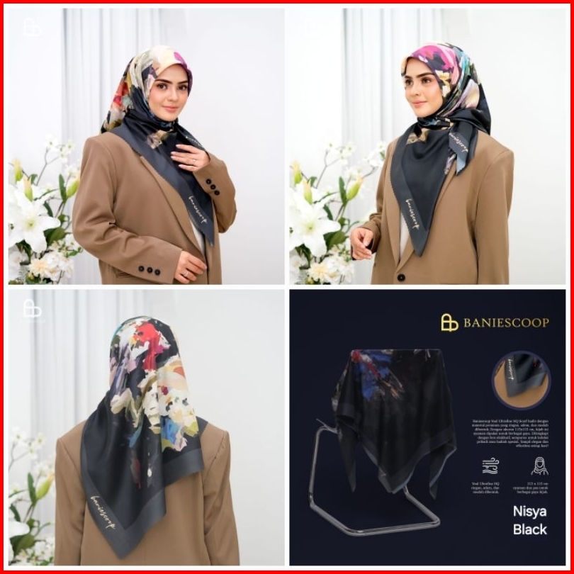 Baniescoop-hijab Voal Motif Ultrafine Nisya Black Premium Uk 115 X 115 Cm-jilbab Segi Empat Modern Scarf Terbaru