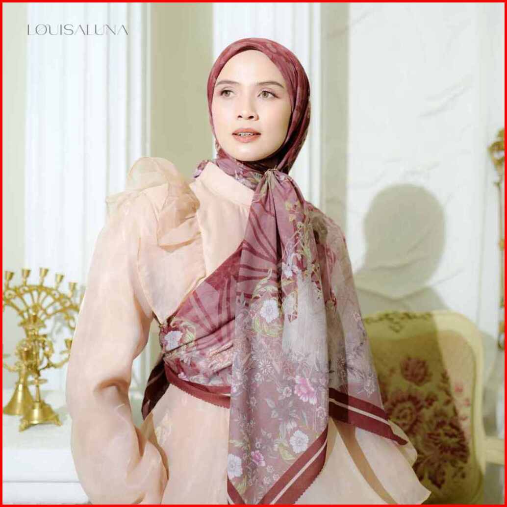 Hijab Segiempat Motif Voal Premium Lasercut - Medina 120 135 Cm - Lembut Elegan - Louisaluna