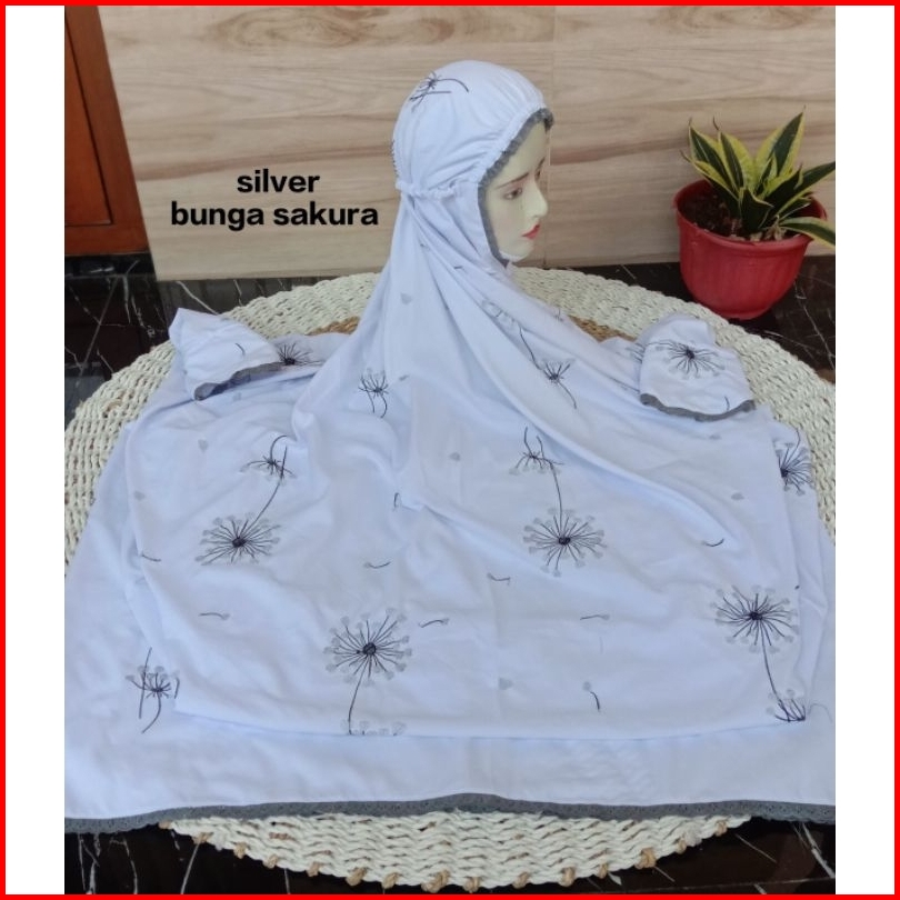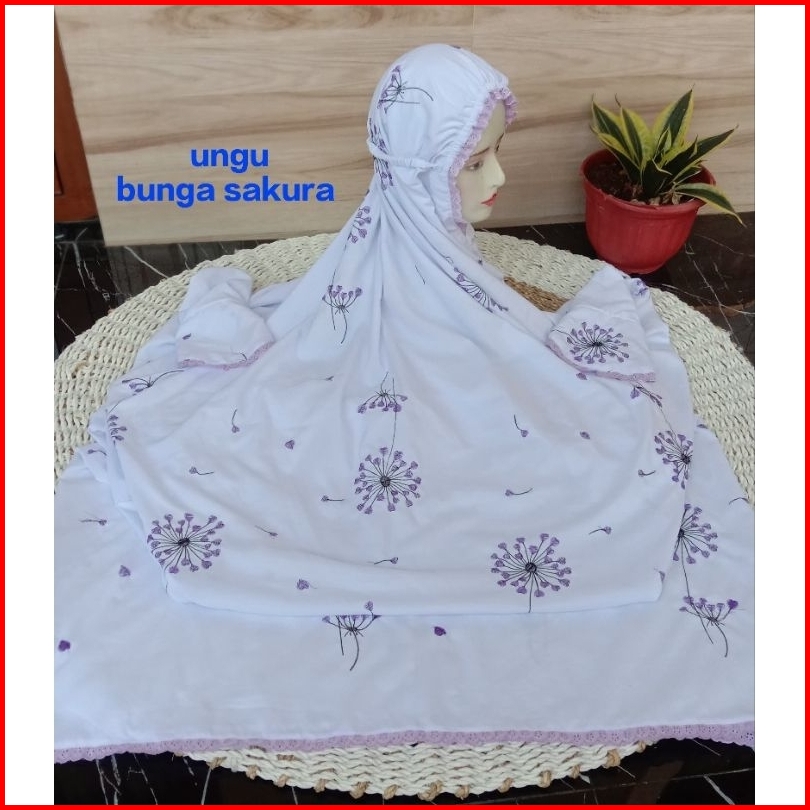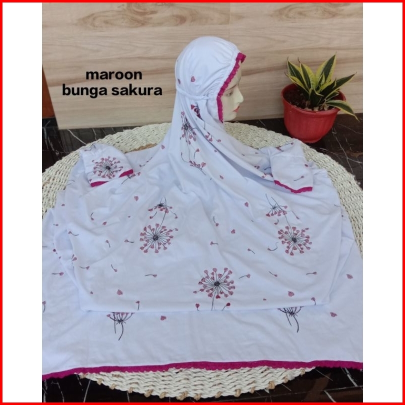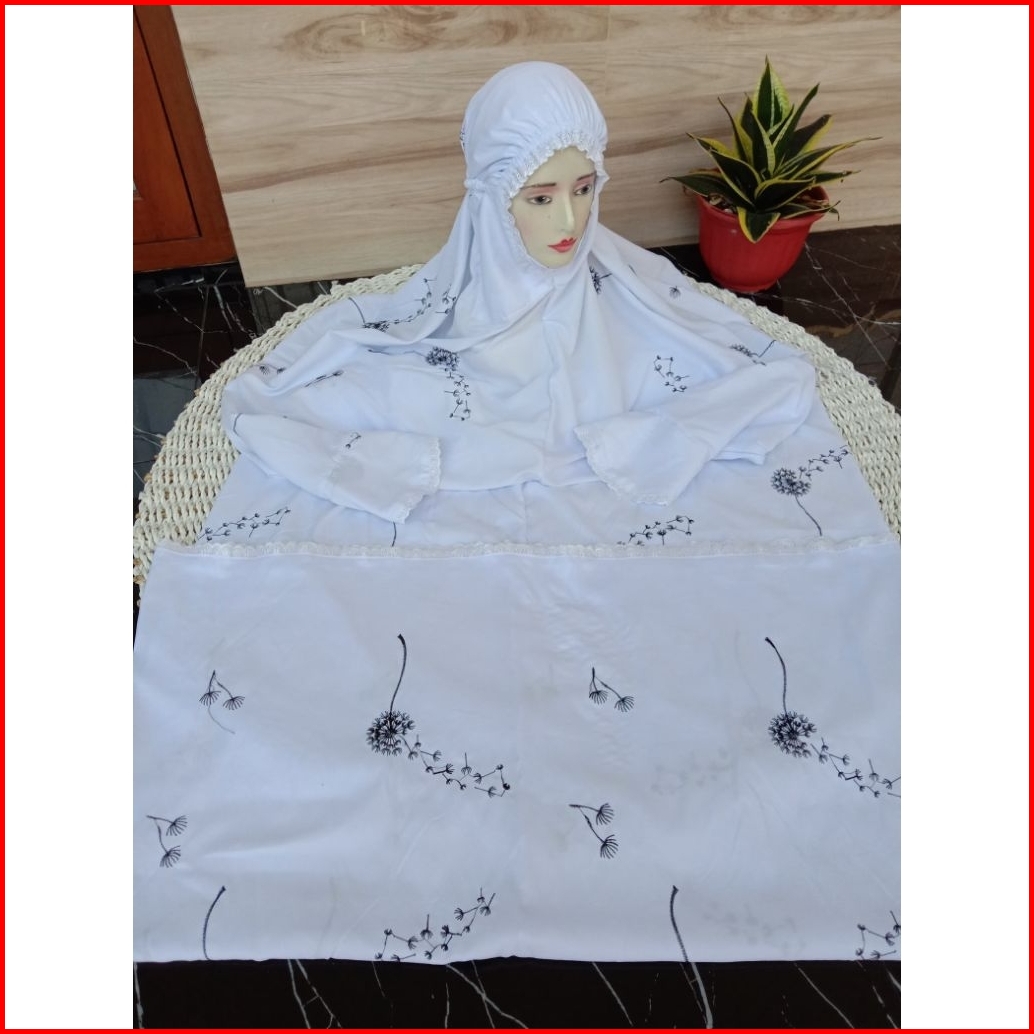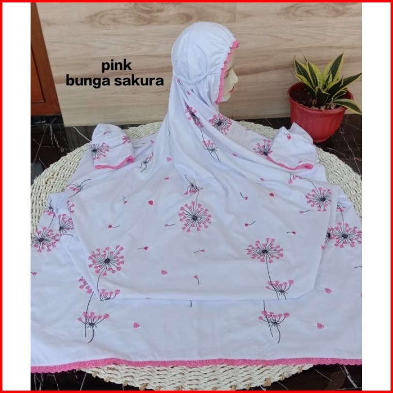 Mukena Terusan Dewasa Motif Bunga Sakura Dan Dandelion