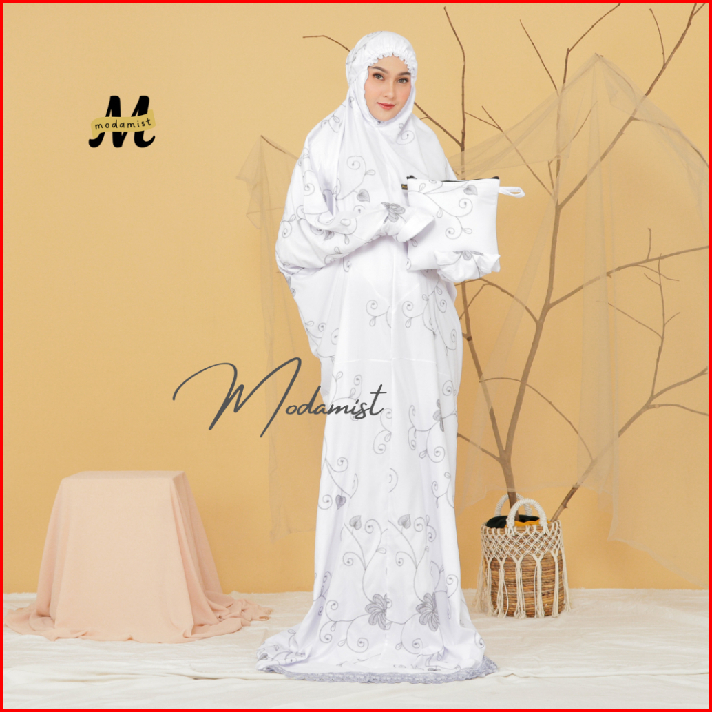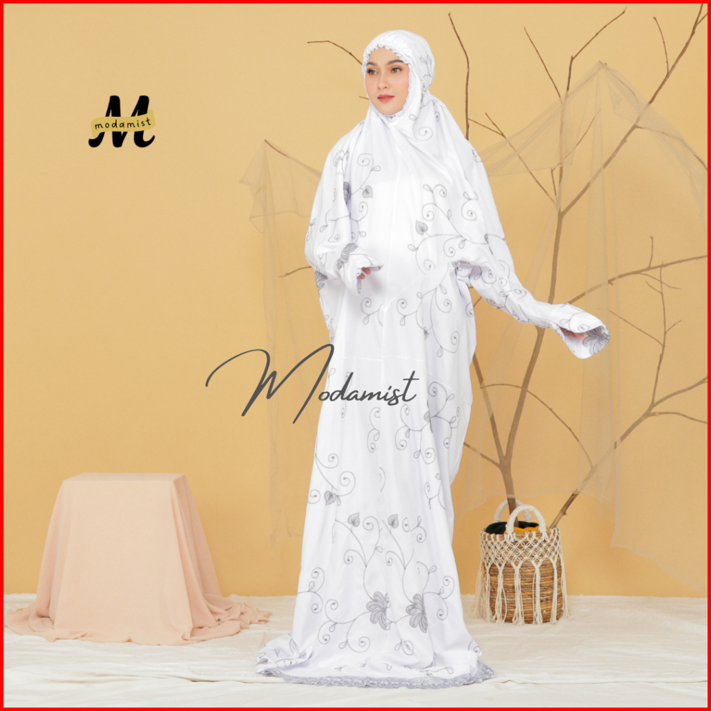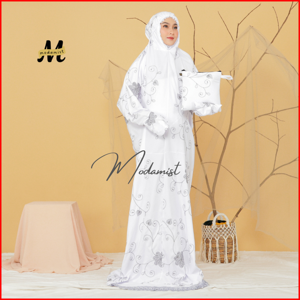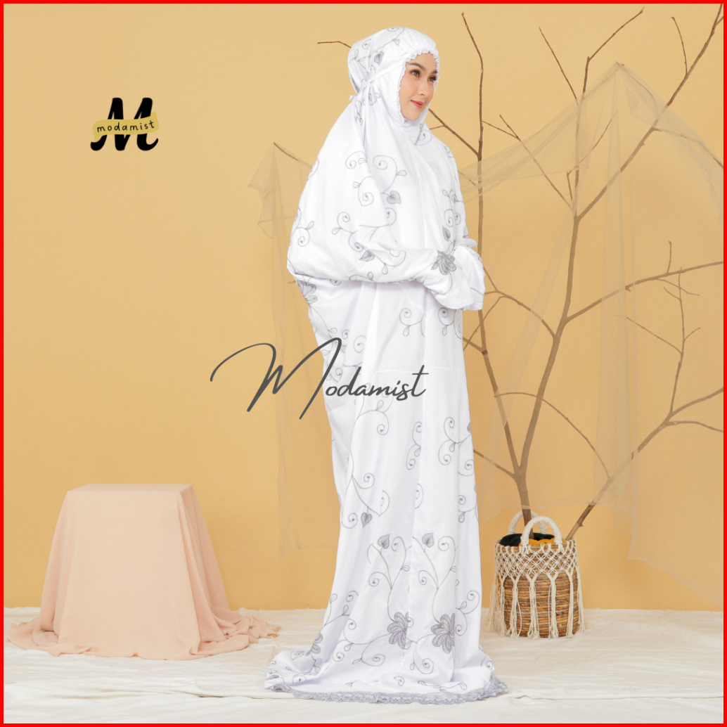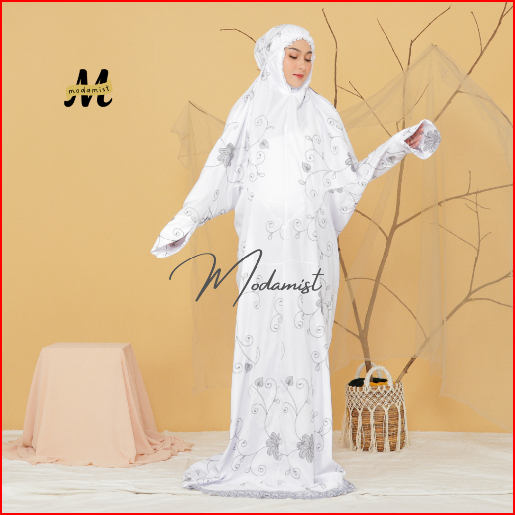 Mukena Terusan Dewasa Putih Full Bordir Renda Bawah