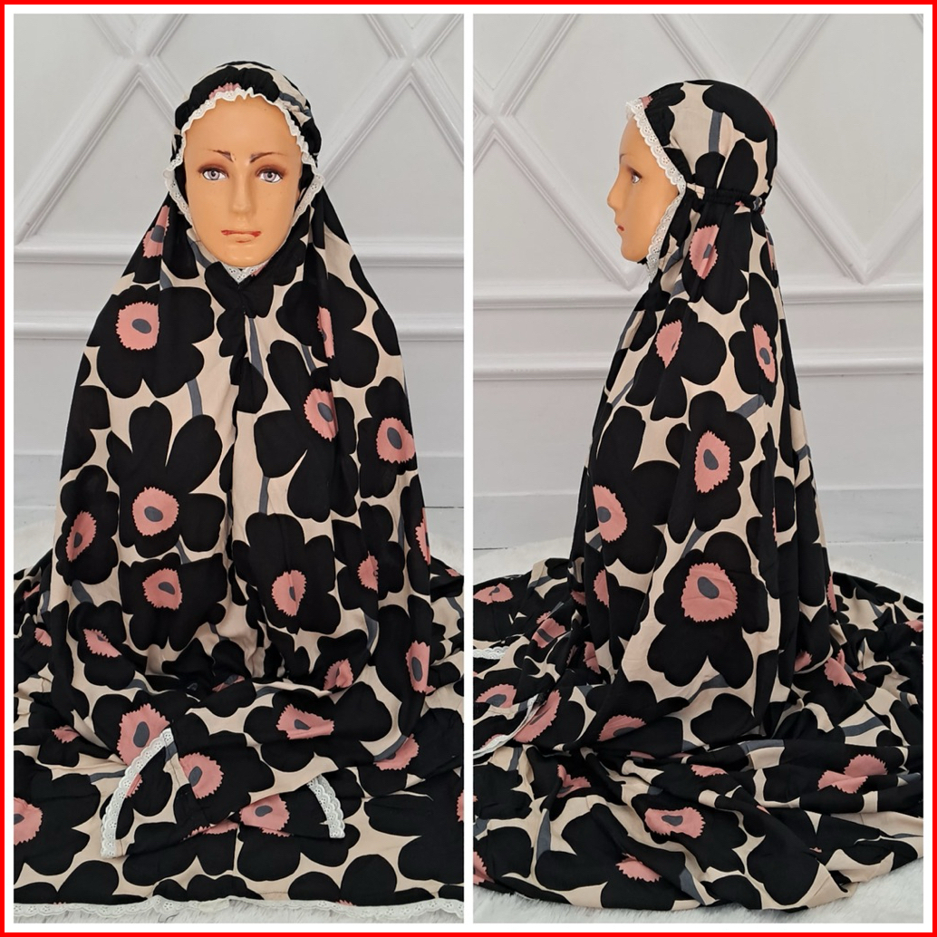 Mukenah Terusan Rayon Motiv Renda Tepi