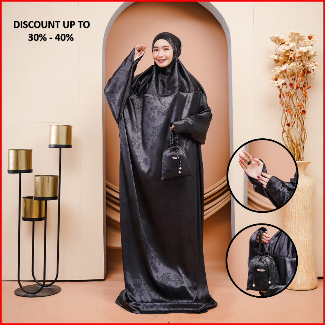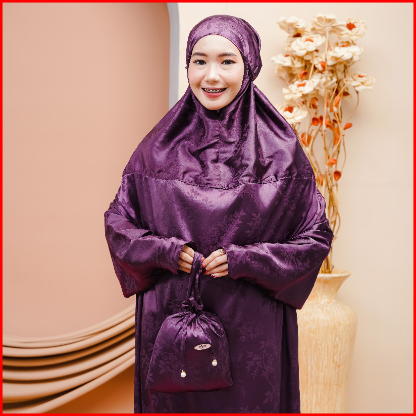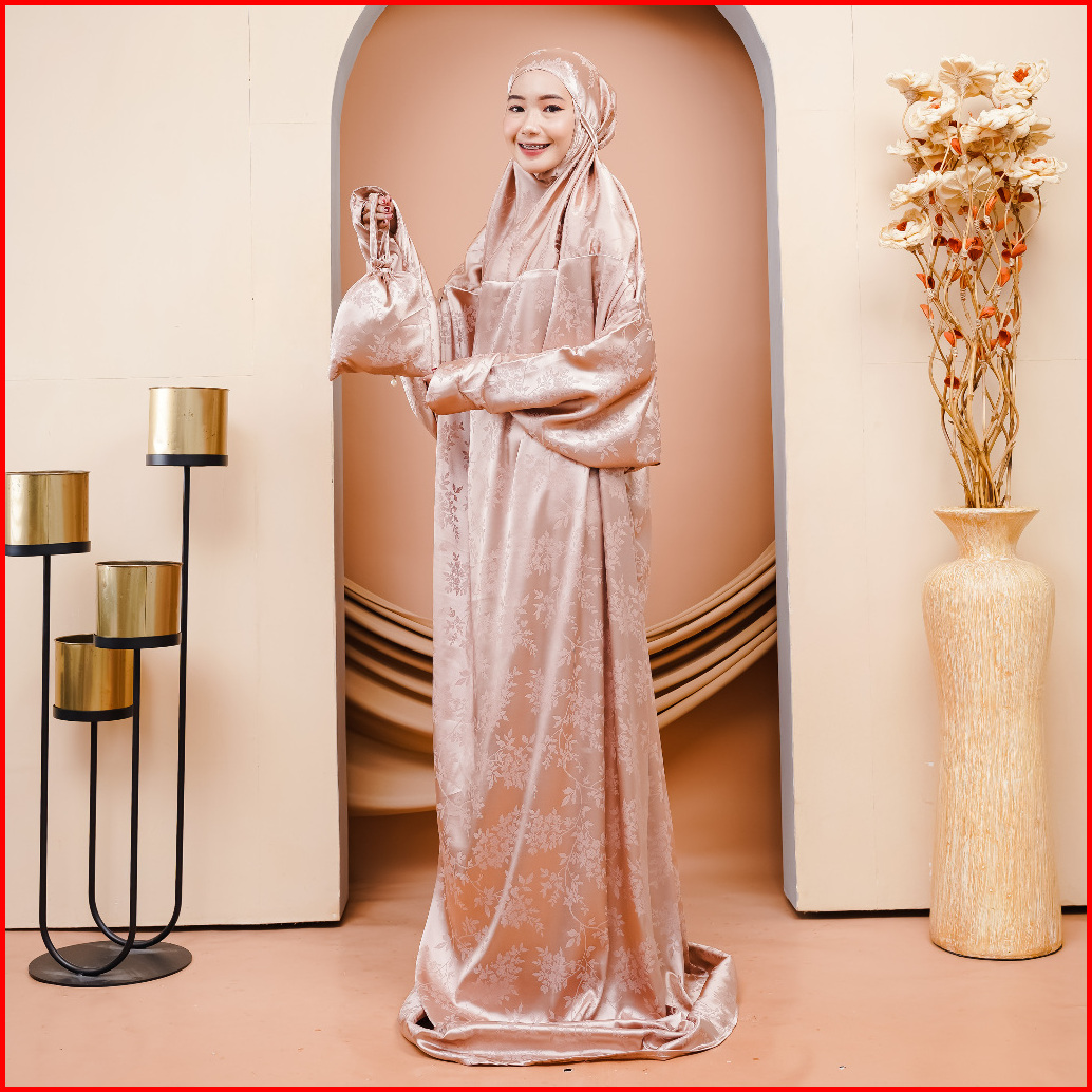 Mukena Terusan Hadramaut Super Premium Exlusive Bahan Jaguard Silk Size Super Duper Jumbo Motif Daun Timbul Yang Super C