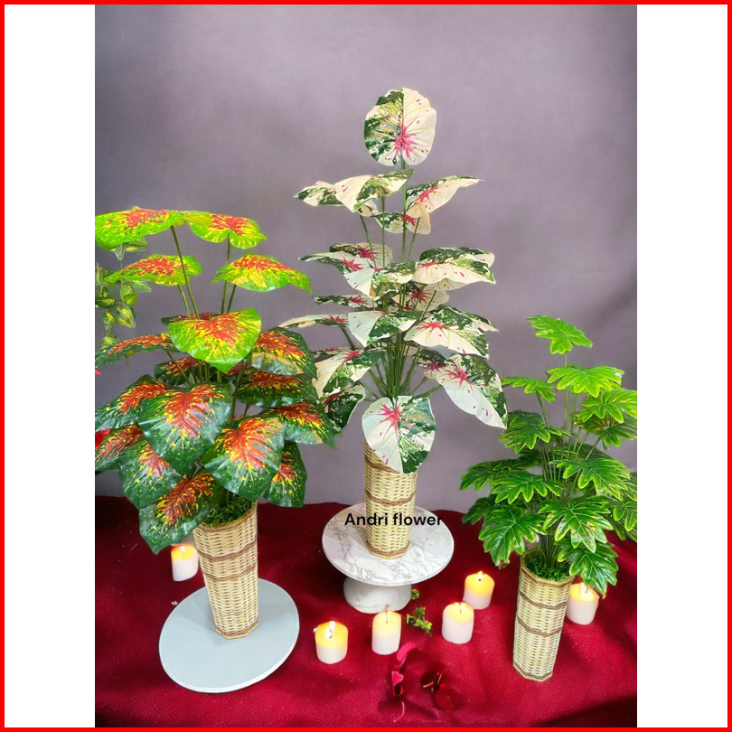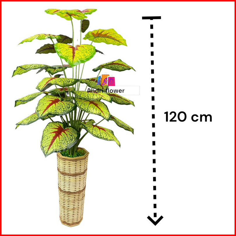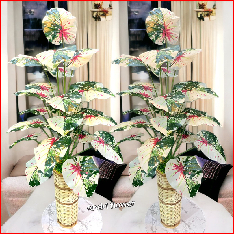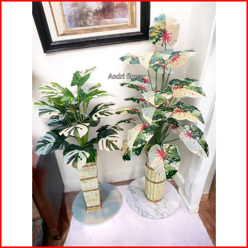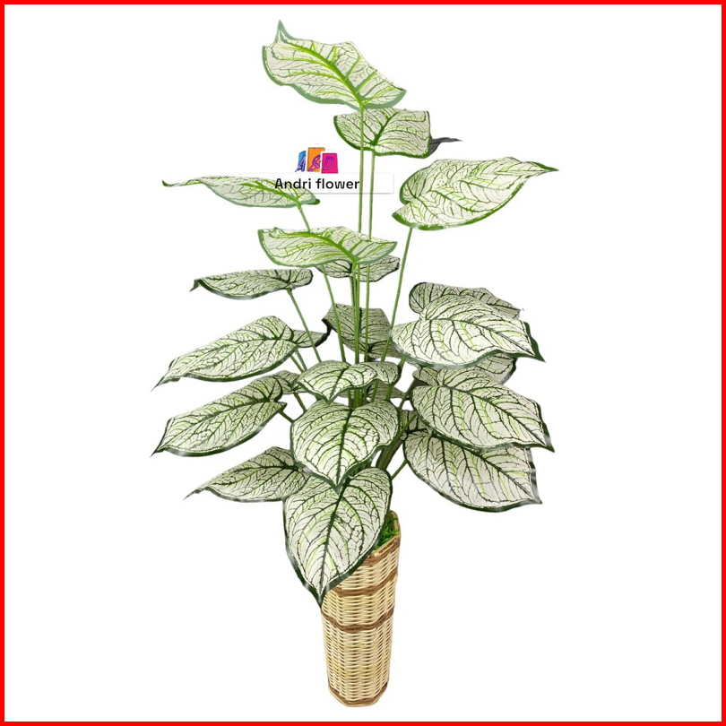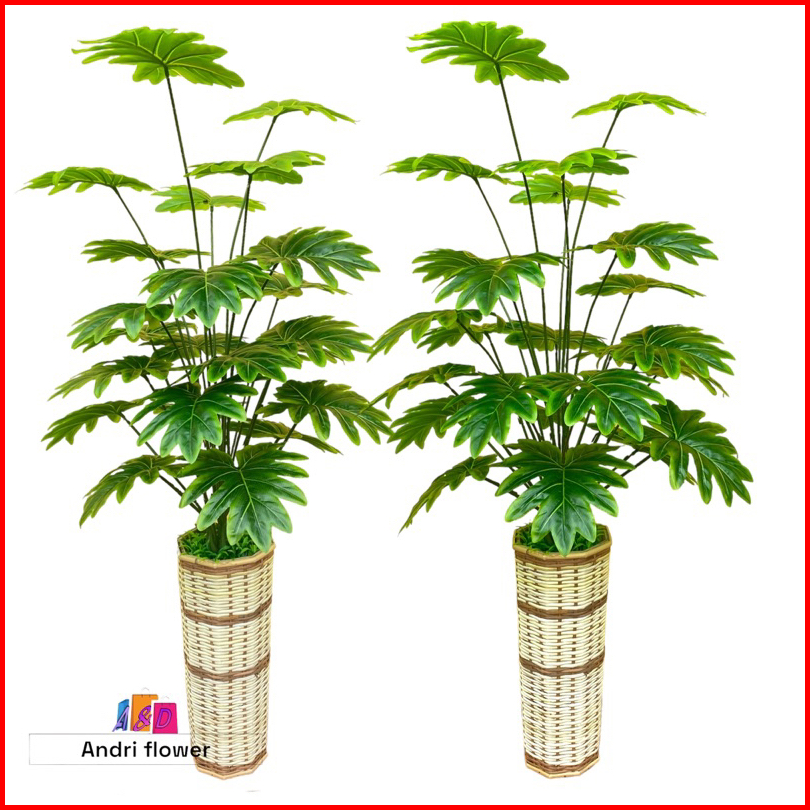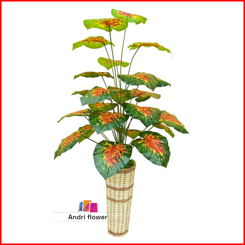 Bunga Hias Daun 24 Kuntum Super Jumbo Dengan Pot Rotan Tingi 135 Cm