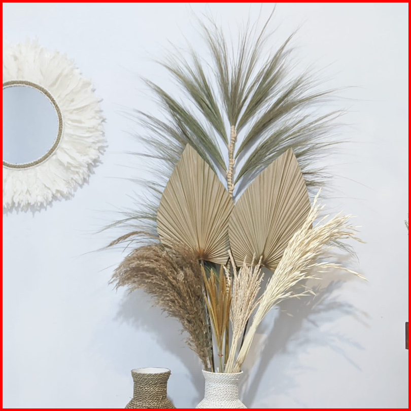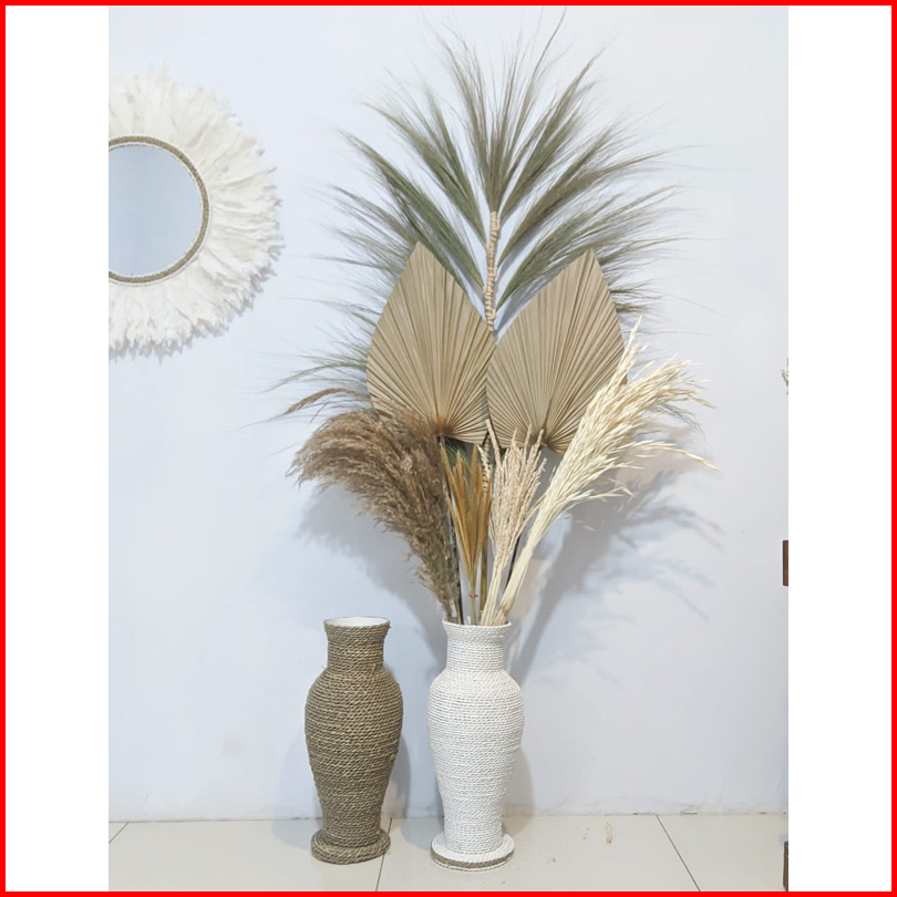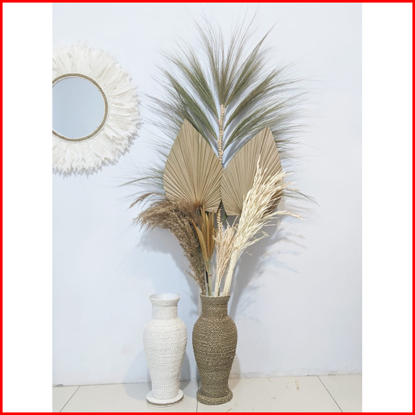 Paket Lengkap Daun Palem Kering Vas 40cm Rayung Pampas Bulu Sataria Bunga Avena