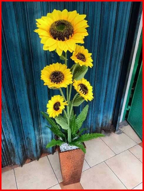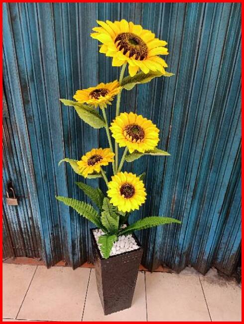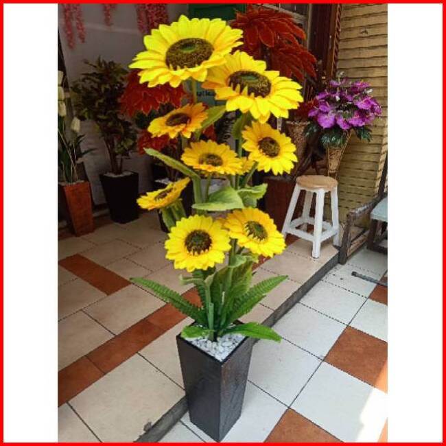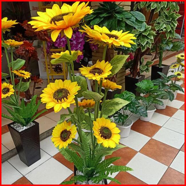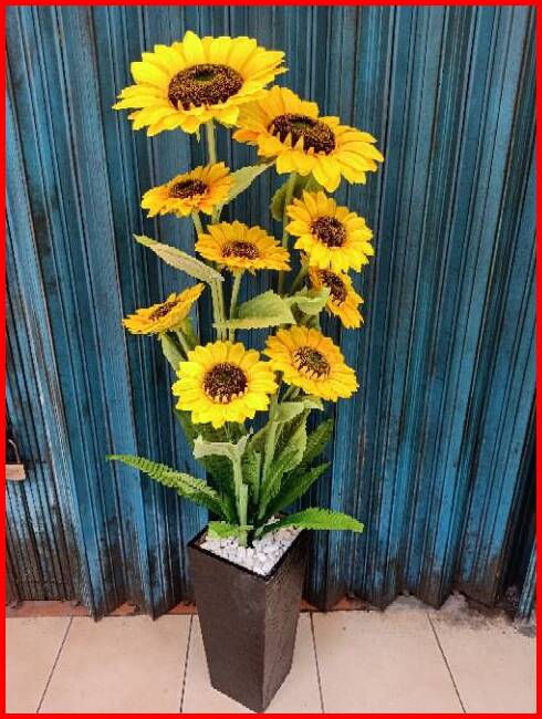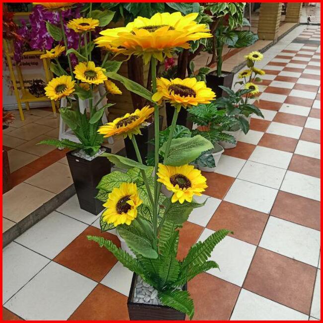Pohon Bunga Matahari Artificial Dengan Pot Kayu Bunga Sudut Bunga Dekorasi