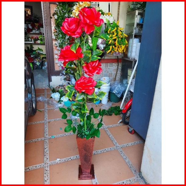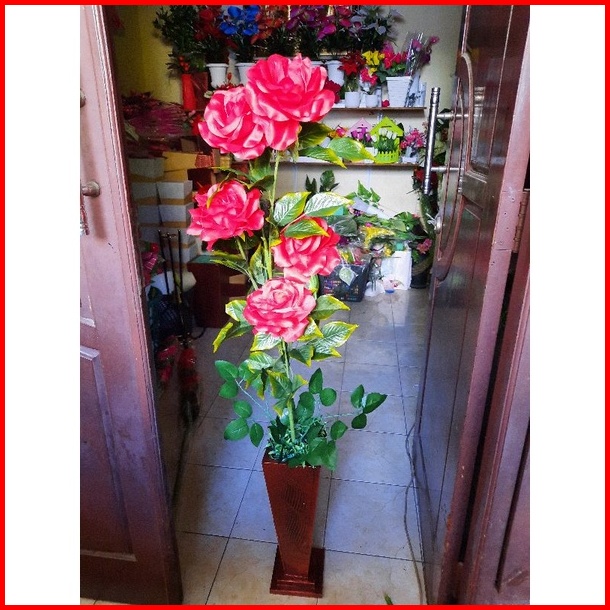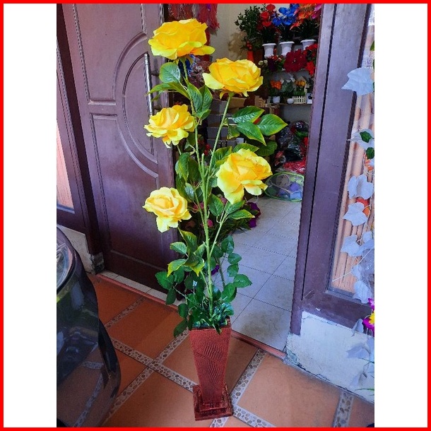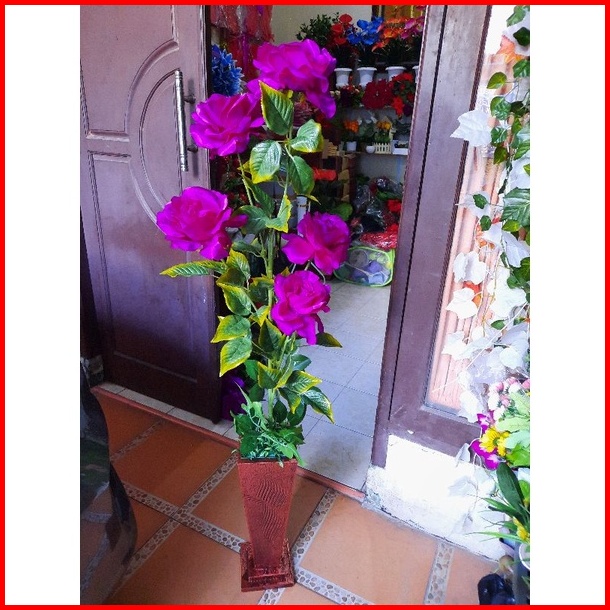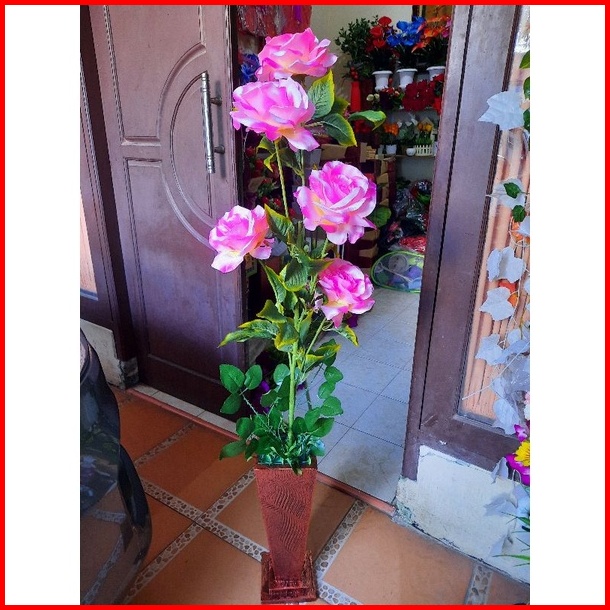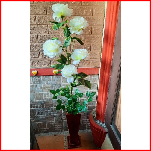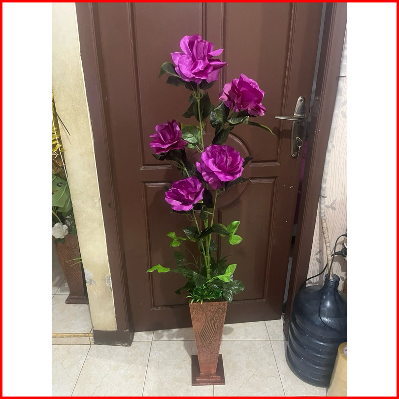 Bunga Pojok Ruangan Bunga Mawar Jumbo Kuntum 5 Pot Artificial Flower Bunga Artificial Home Decor