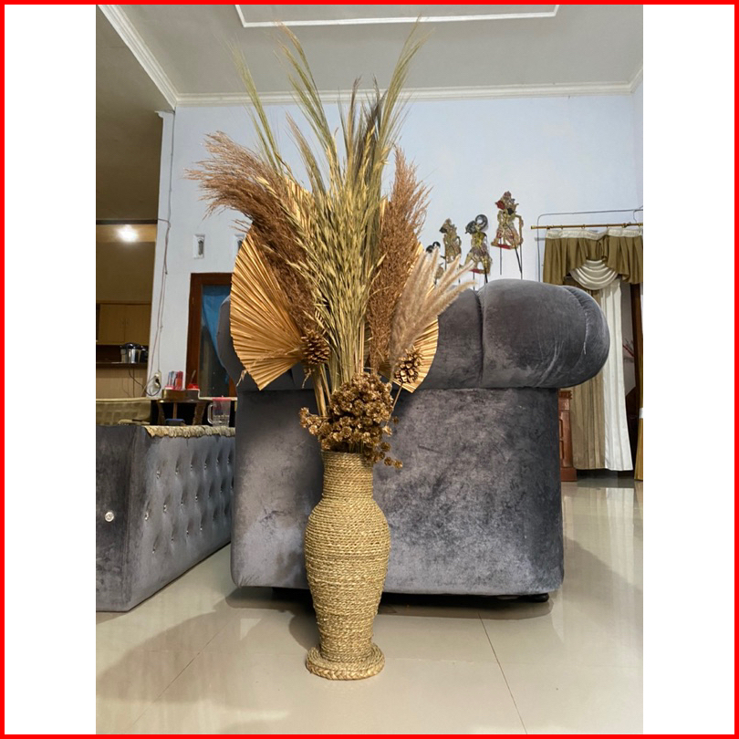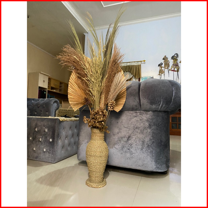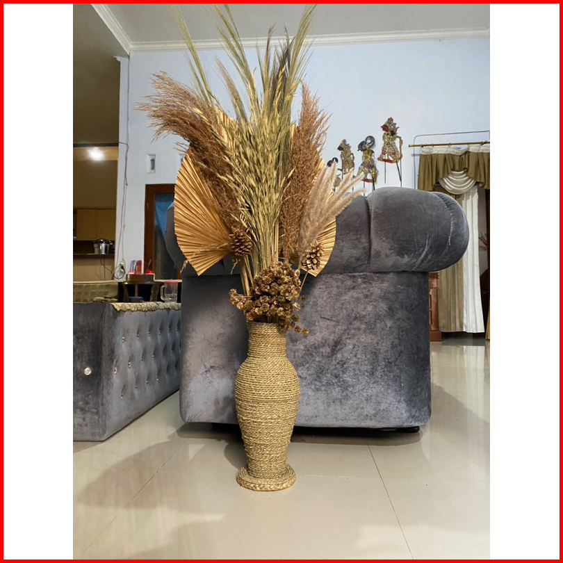 Paket Hemat Bunga Kering Dan Pot Guci Tinggi 50cm Dekorasi Kamar Home Decor Dekorasi Rustic Daun Palem Kering Dried Palm