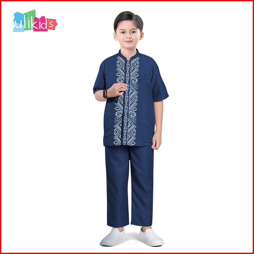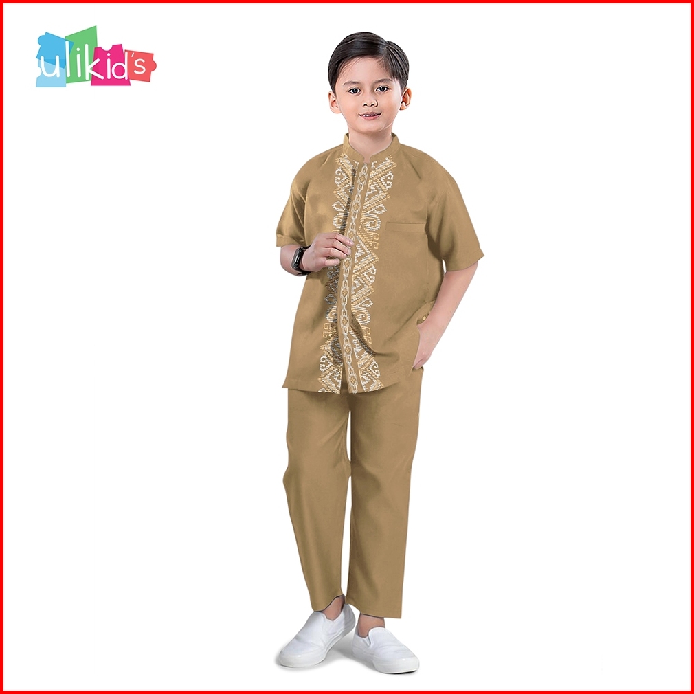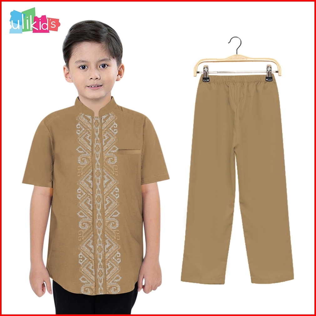 Ulikids Setelan Baju Koko Kemeja Muslim Anak Laki-laki Lengan Pendek Kombinasi Bordir Batik Premium 4-10 Tahun Terlaris