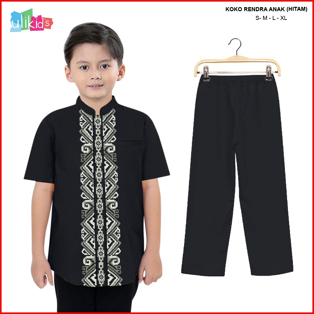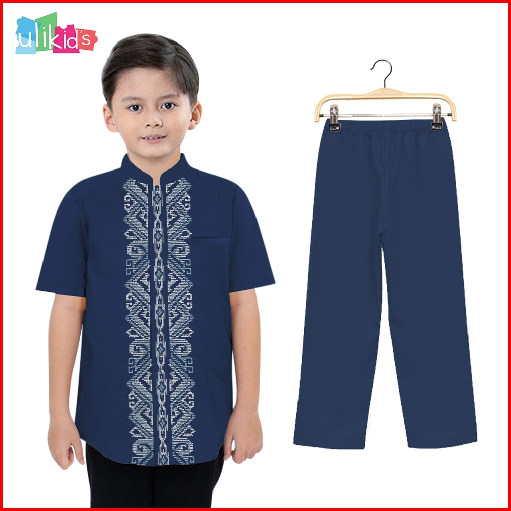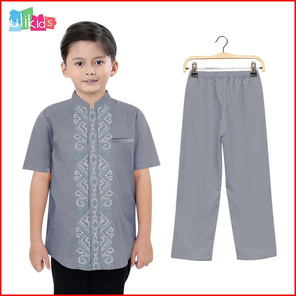 Ulikids Setelan Baju Koko Kemeja Muslim Anak Laki-laki Lengan Pendek Kombinasi Bordir Batik Premium 4-10 Tahun Terlaris