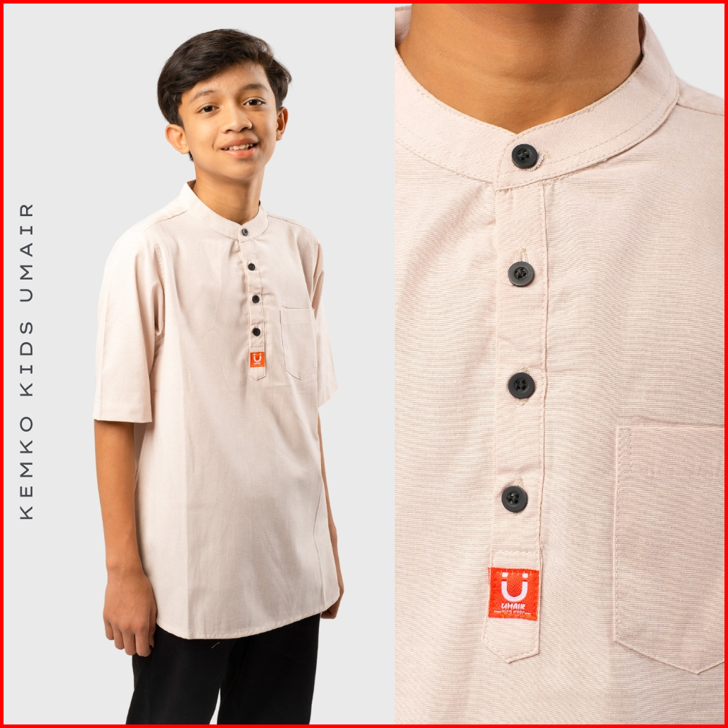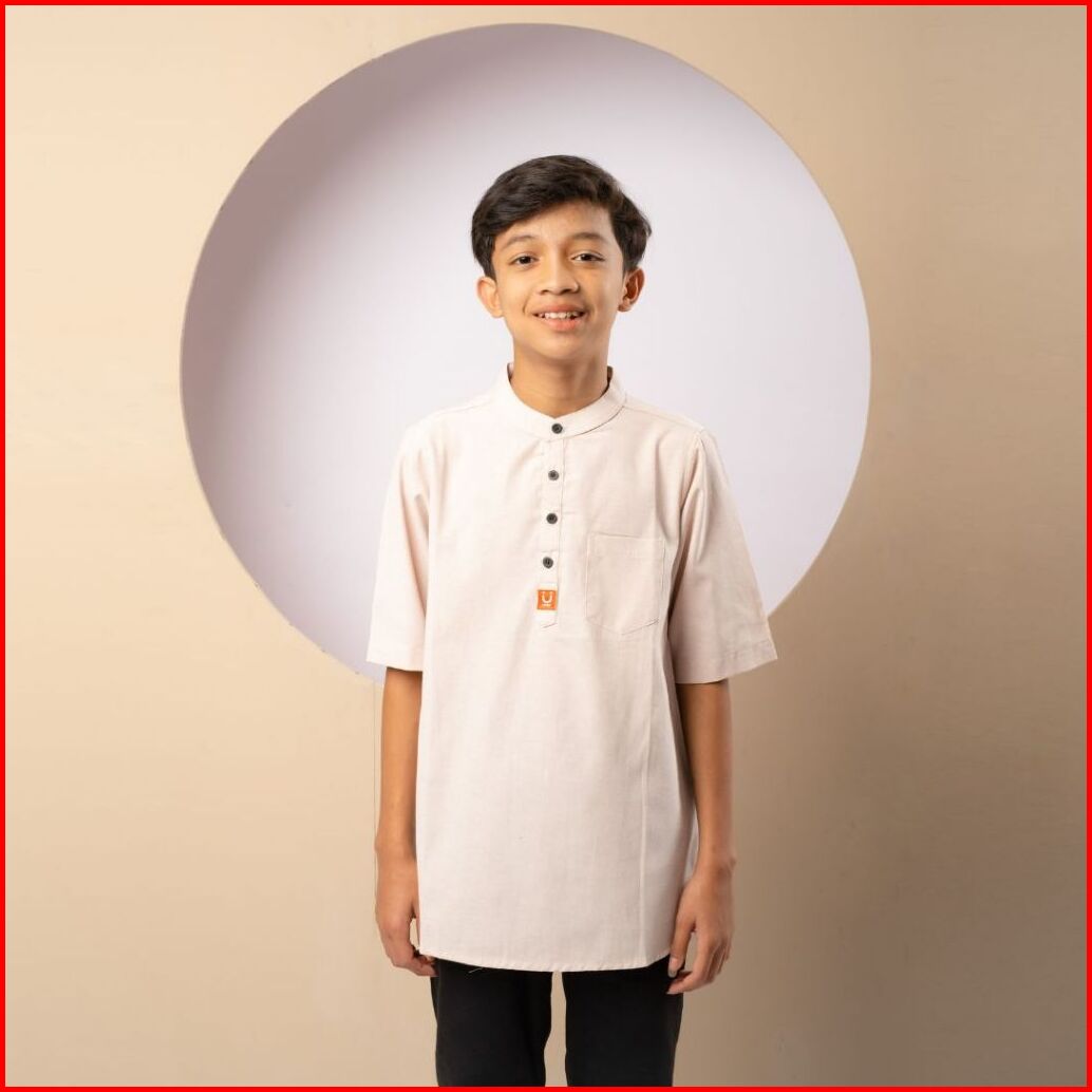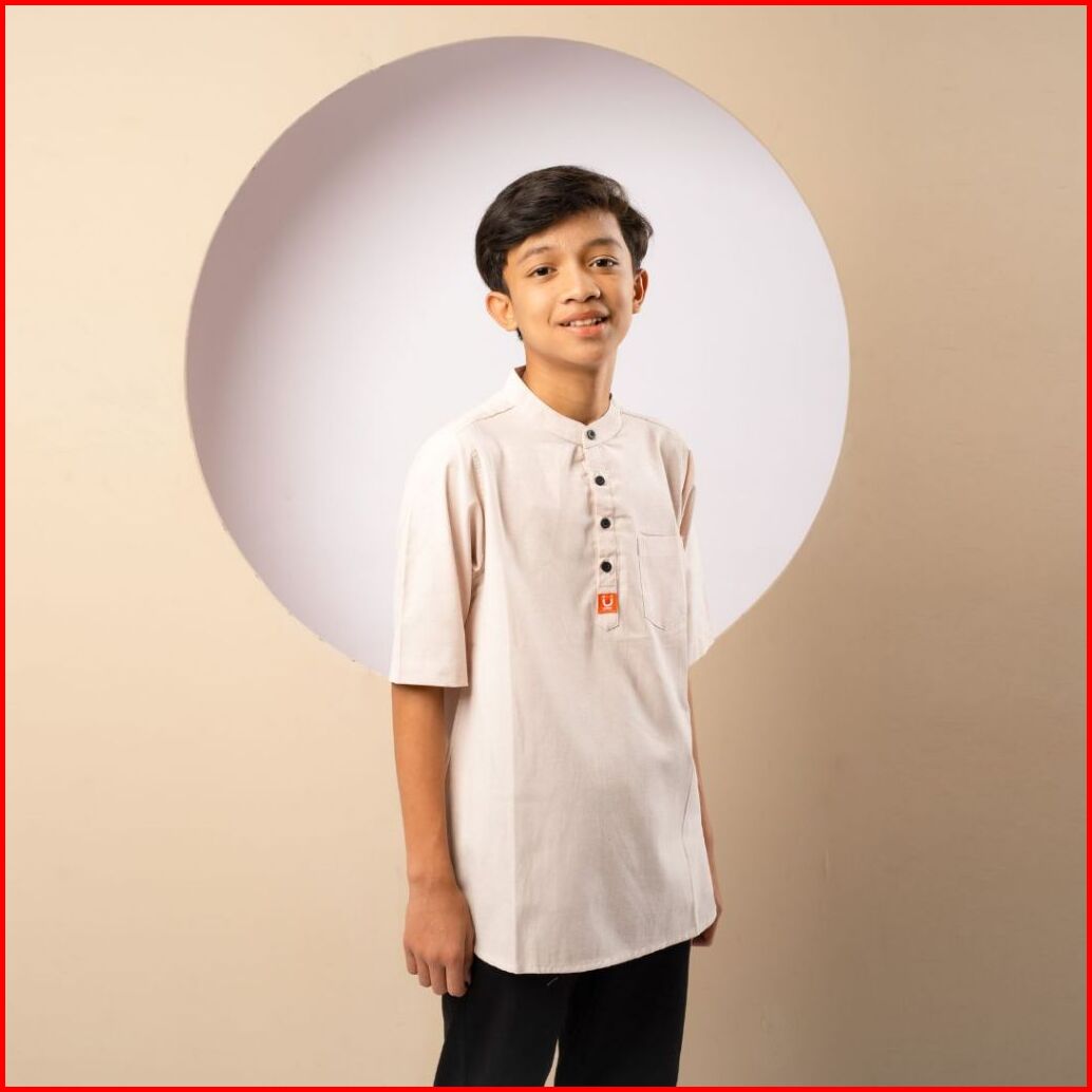 Umair Kids Koko Kurta Oxford Anak Lengan Pendek Cream Usia 6- 13 Tahun
