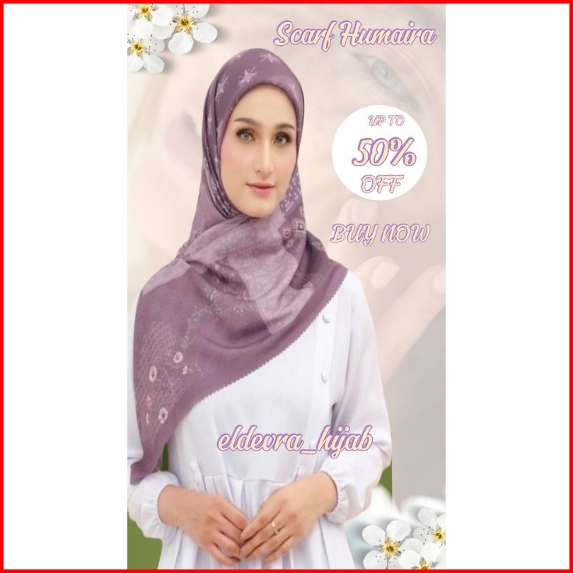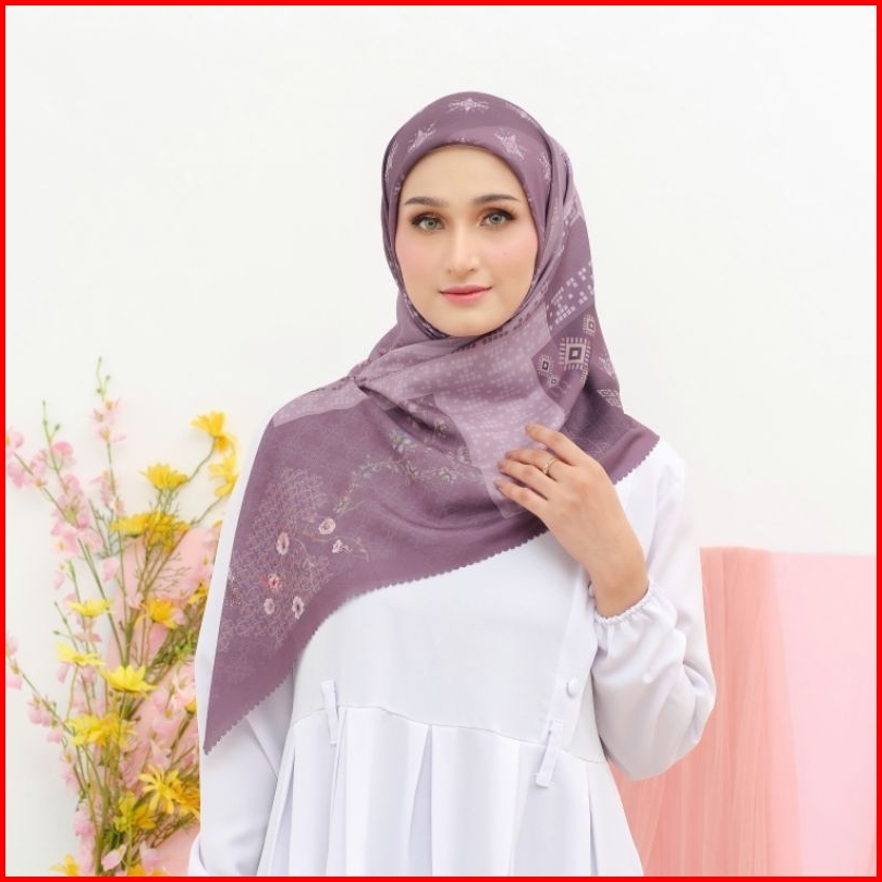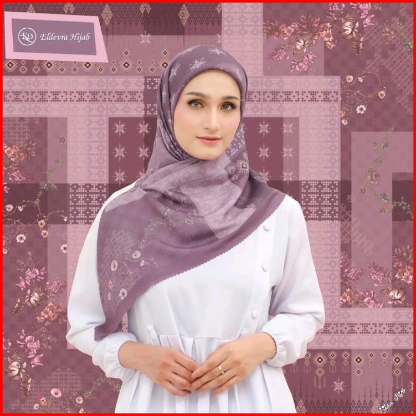 Eldevra Hijab - Jilbab Segiempat Motif Printing Humaira Purpple Scarf Voal Premium Kerudung Seragaman Square Lasercut