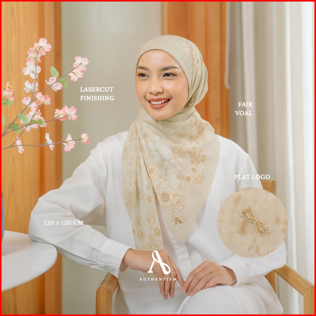 Authentism Id Heirloom Series Kerudung Segi Empat Fair Voal Lasercut Premium Hijab Motif
