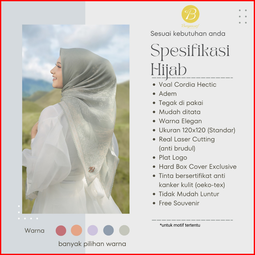 Banyuscarf Edition Ijen Series Hijab Segi Empat Square Print Motif Cordia Hectic Voal Premium Murah 120x120