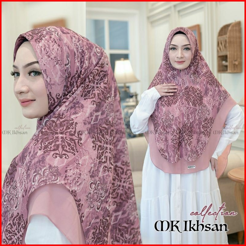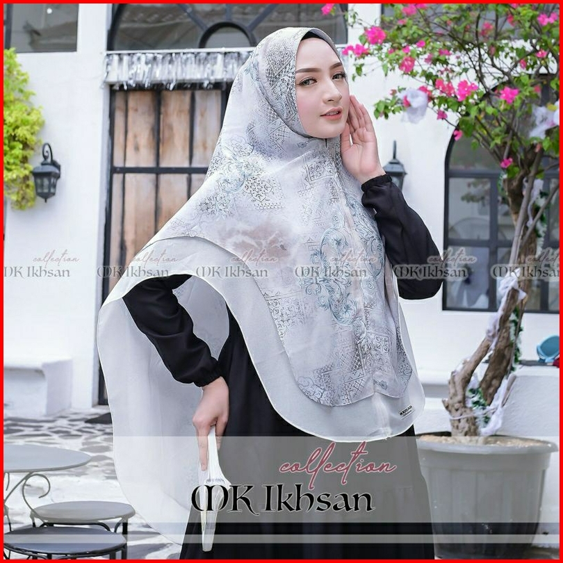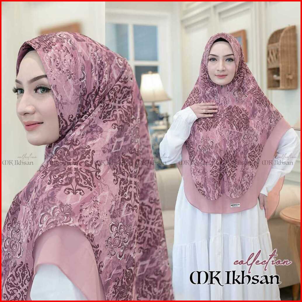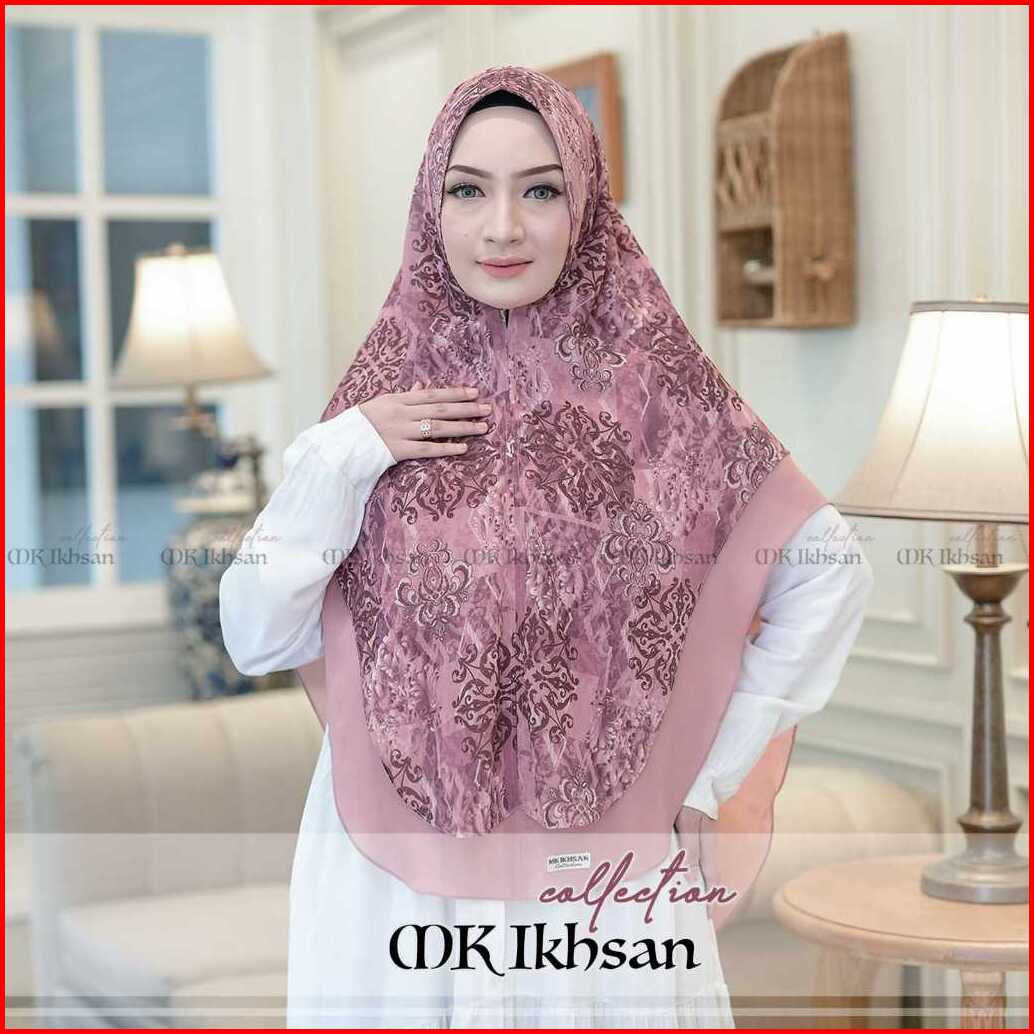 Mk Ikhsan Collection Hijab Khimar Syar I Motif Kembang Mawar Ceruty Babydoll Hijab Syar I Motif Kombian Kekinian