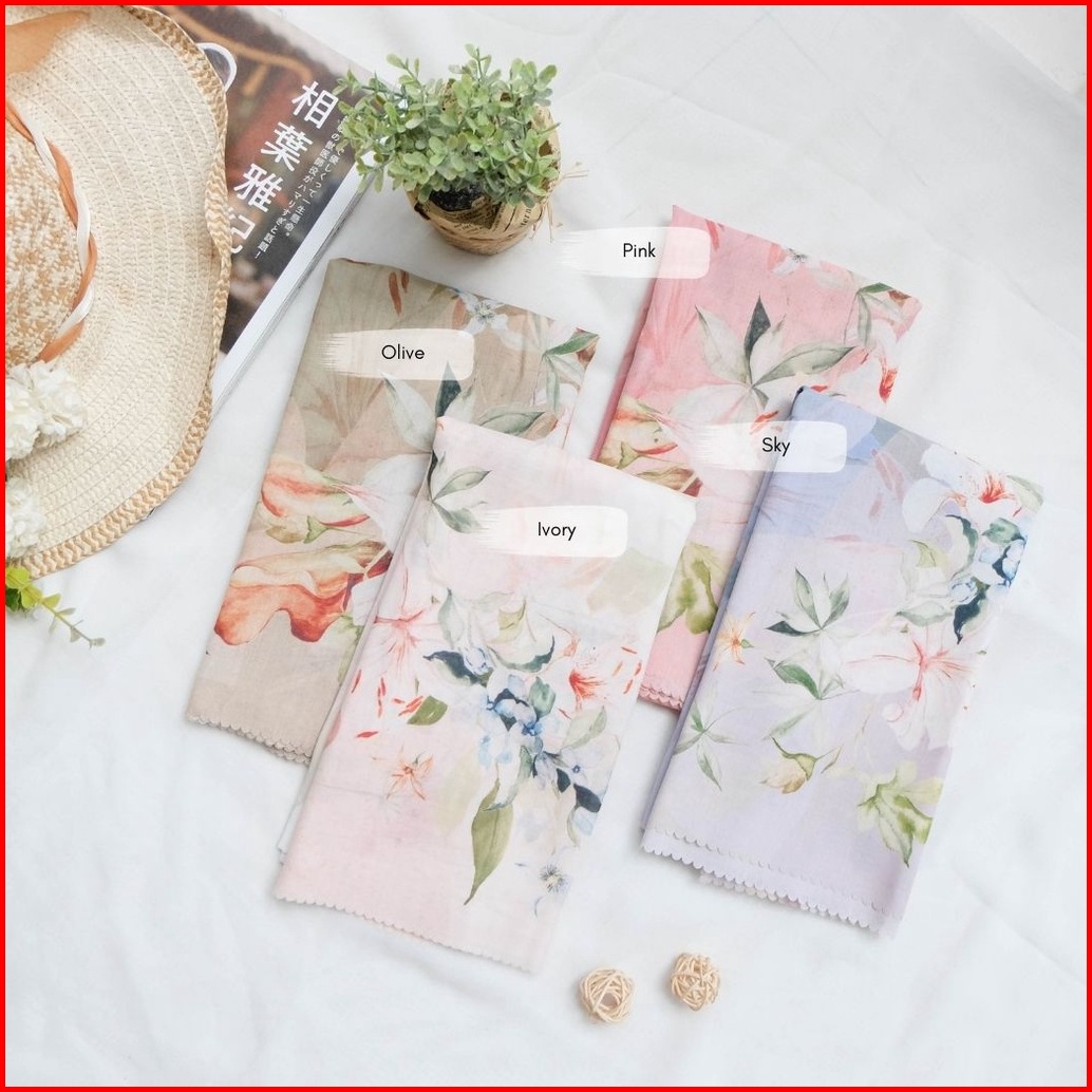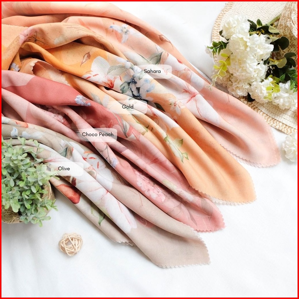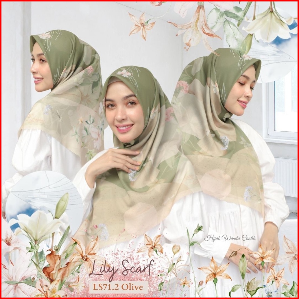 Hijabwanitacantik - Segiempat Lily Scarf Ls71.2 Olive Hijab Segi Empat Motif Jilbab Voal Kerudung Printing Premium