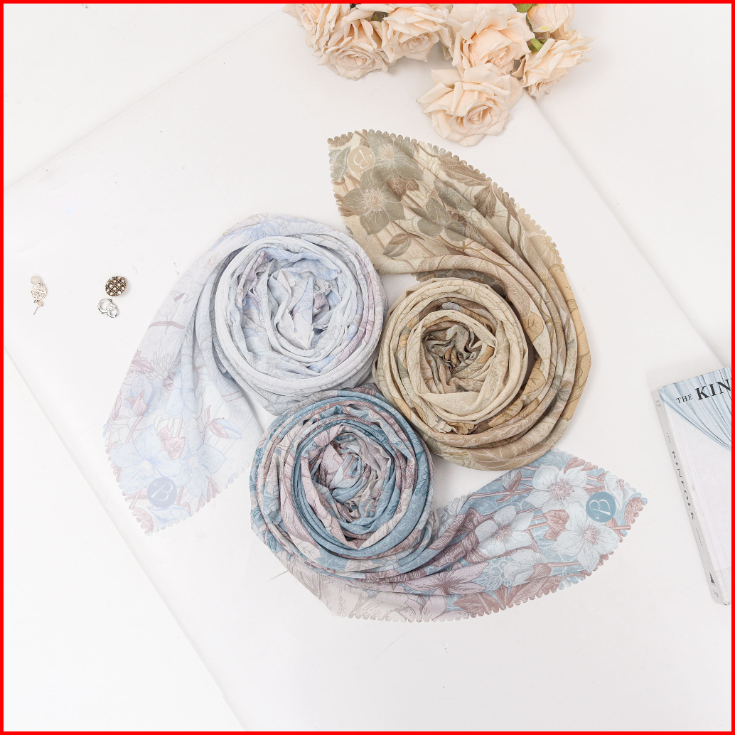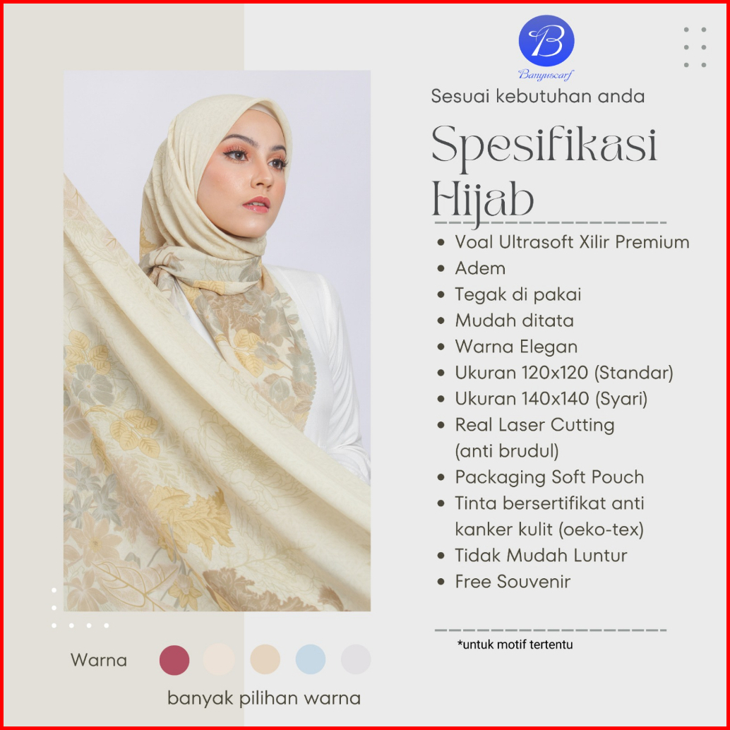 Banyu Scarf Jenisari Series Hijab Segi Empat Square Print Motif Voal Ultrasoft Xilir Premium Murah Syari 120x120 140x140