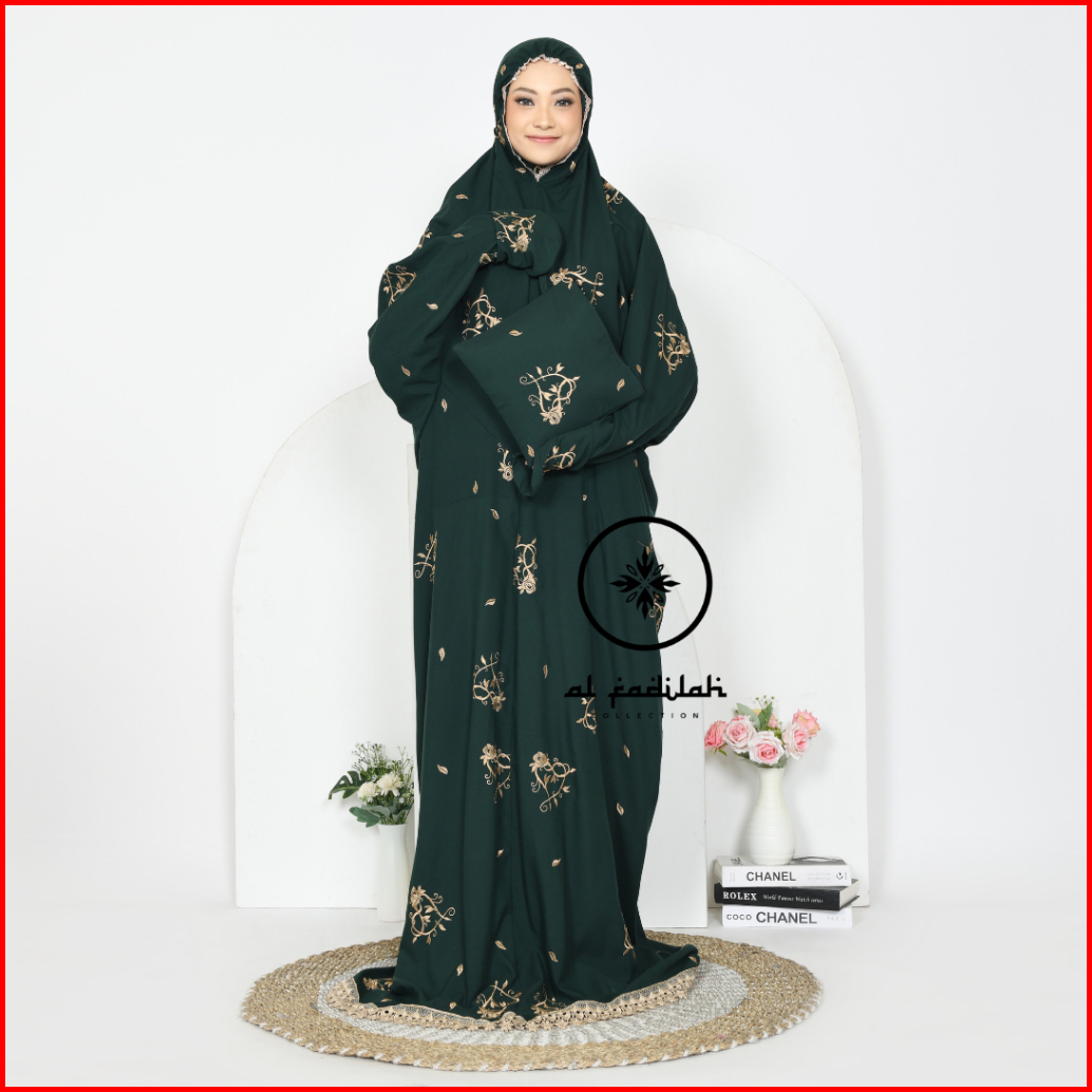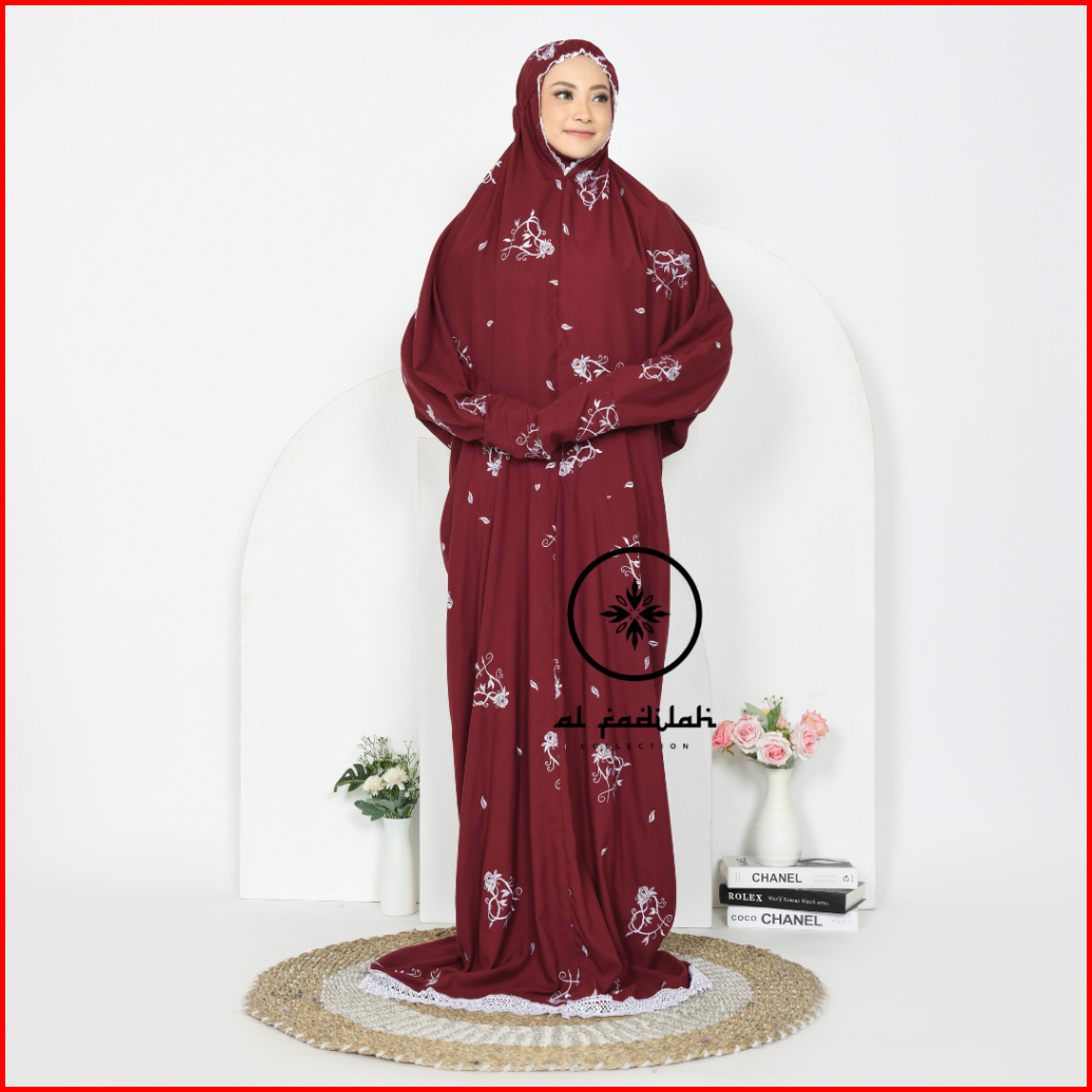 Al-fadilah Mukena Terusan Dewasa Bordir Bunga Love Rose Mukenah Lajuran Dewasa